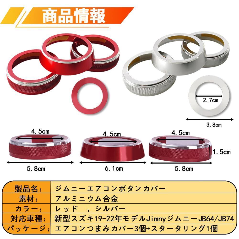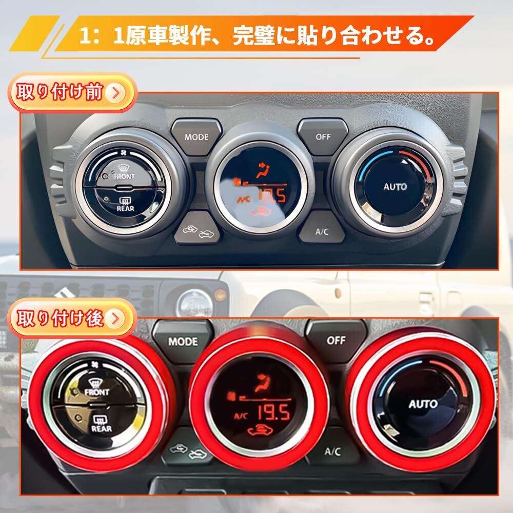 新型ジムニー用 アルミ合金 エアコンダイヤルカバー 内装パーツ エンジンスタートリング 内装パーツ 新型ジムニー JB64Wと新型ジムニーシエラ JB74W 2019~ 22に対応 (レッド)