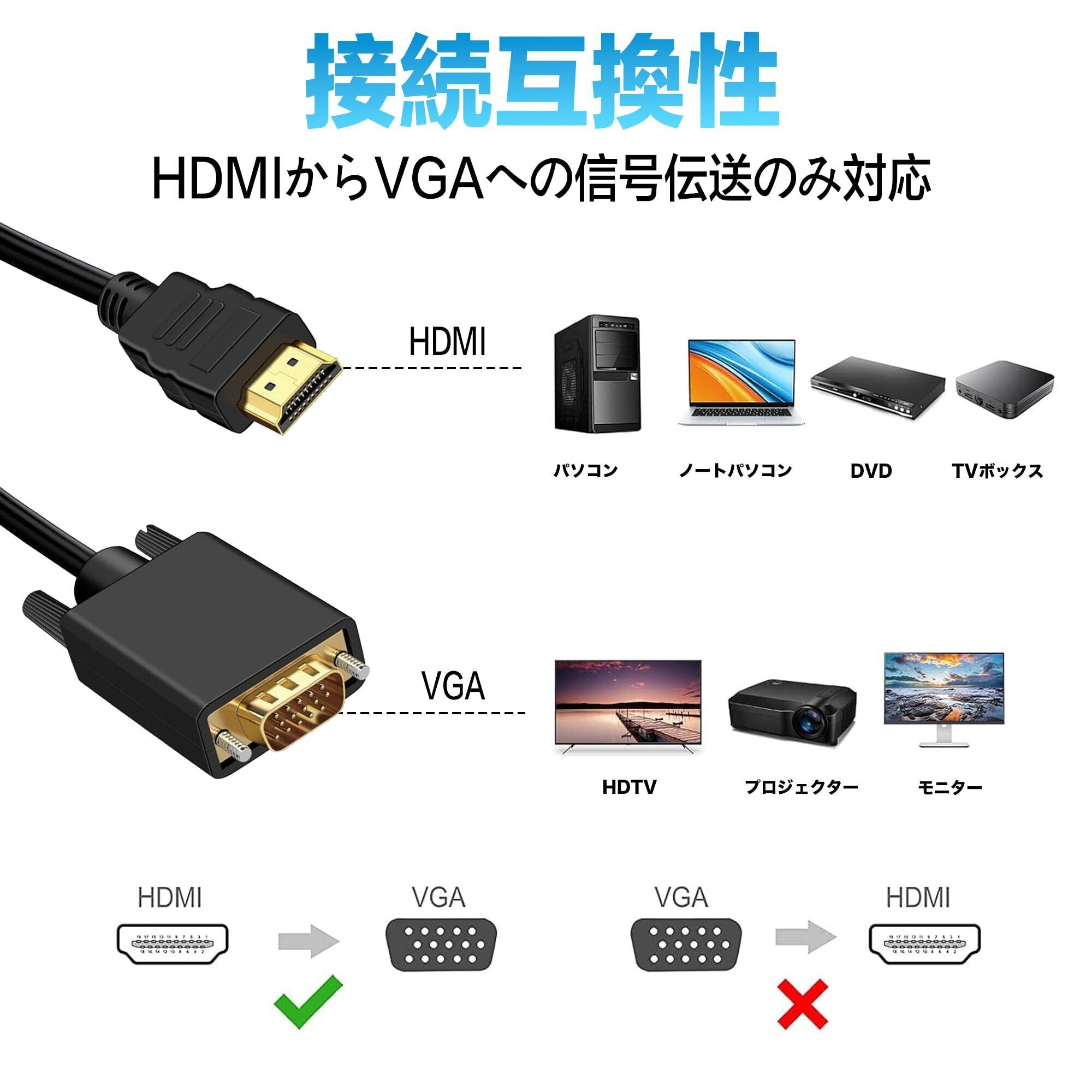 HDMI VGA 変換ケーブル, (逆方向に非対応)、単方向 HDMI (ソース) - VGA (ディスプレイ) ケーブル (オス - オス) 1080p@60Hz PC, モニター, プロジェクター, HDTV, Xboxなどに対応 (3M)