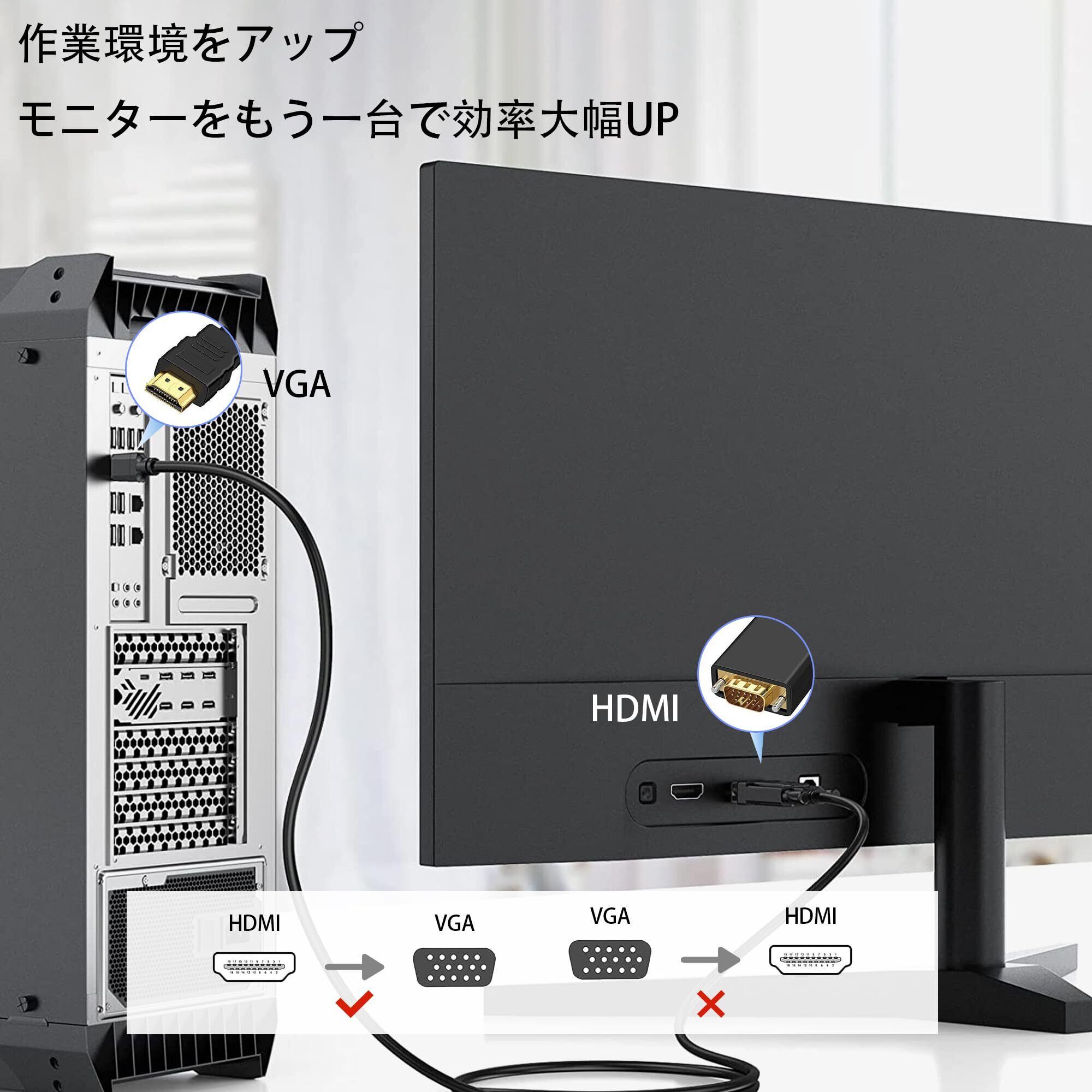 【幅広い互換性】 HDMI-VGAケーブルは、ノートパソコン、デスクトップPC、セットトップボックス、DVDプレーヤー、ゲーム機などHDMI端子付き機器を、モニター、プロジェクター、テレビなどVGA端子付き機器に接続可能。オフィス、教育、家庭用エンタメなど幅広い場面で活躍します。