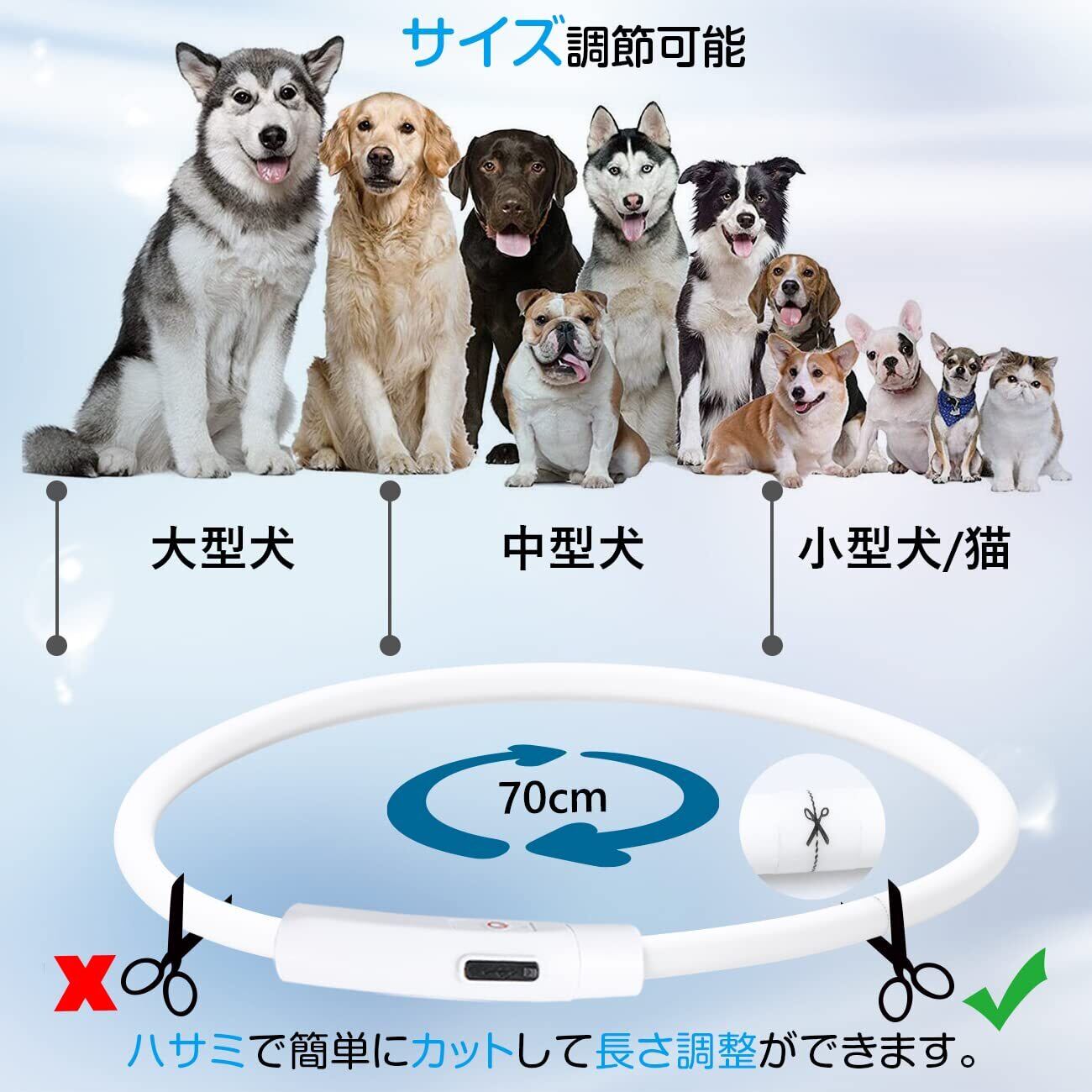 光る首輪 犬 USB充電式 4つ発光モード 20分充電で最長7時間使用可能 70cm サイズ調節可能 LED 軽量 ペットのお散歩安全対策 事故防止 視認距離500m 小/中/大型犬適応 (虹色)