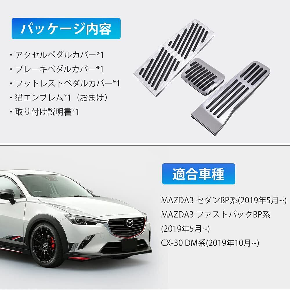 アルミペダル マツダ3 セダン/ファストバック BP系 CX-30 DM系 専用 ペダル アクセサリー MAZDA3 CX30 ペダルカバー 内装 カスタム パーツ ドレスアップ アクセルペダル ブレーキペダル フットレスト 滑り止め 工具不要 3点セット 説明書付き