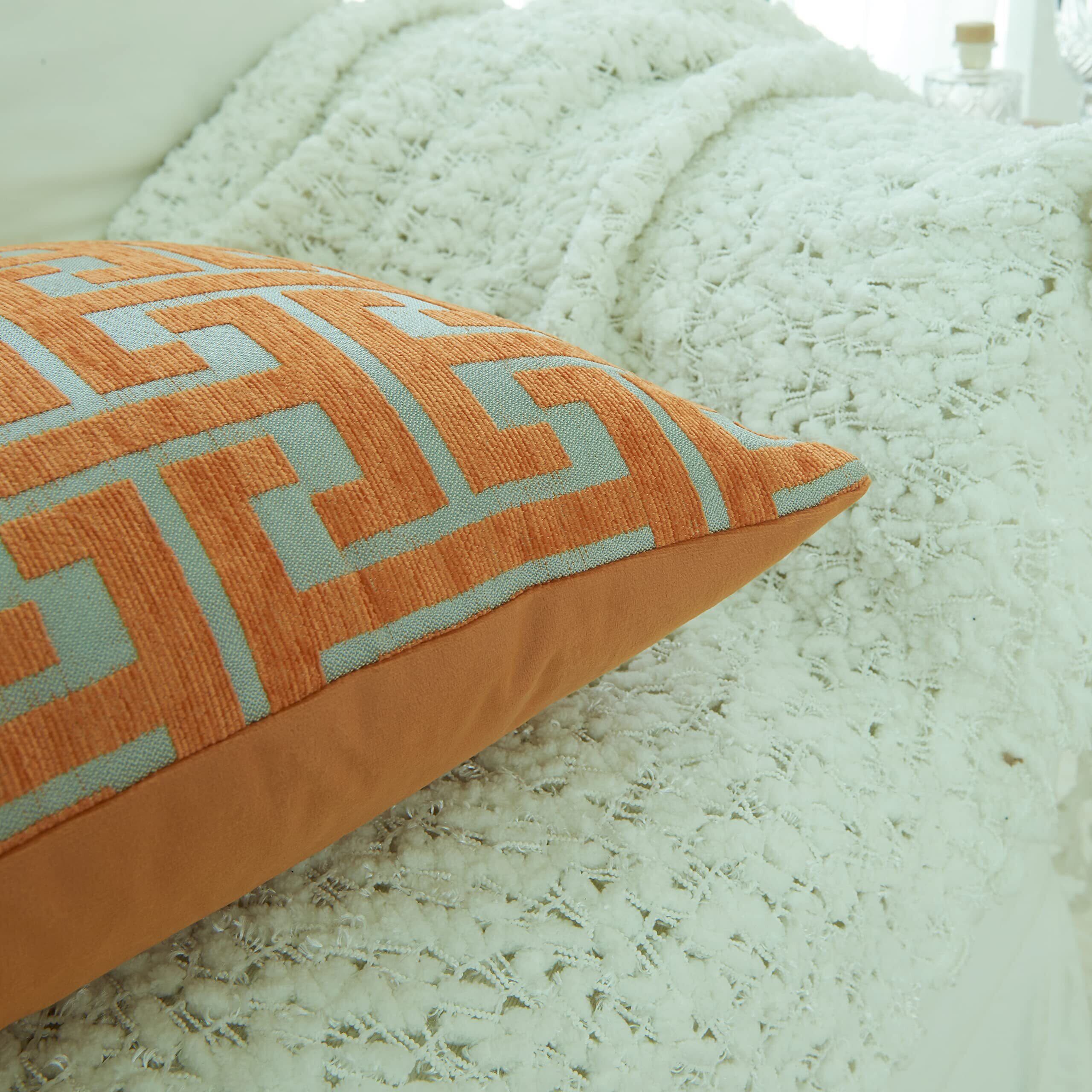 【2022最新】クッションカバー シェニール生地 幾何学模様 柄 おしゃれ 柔らかい北欧 可愛い ピロケース 車 椅子 インテリア飾り 2枚セット (オレンジ, 45x45)