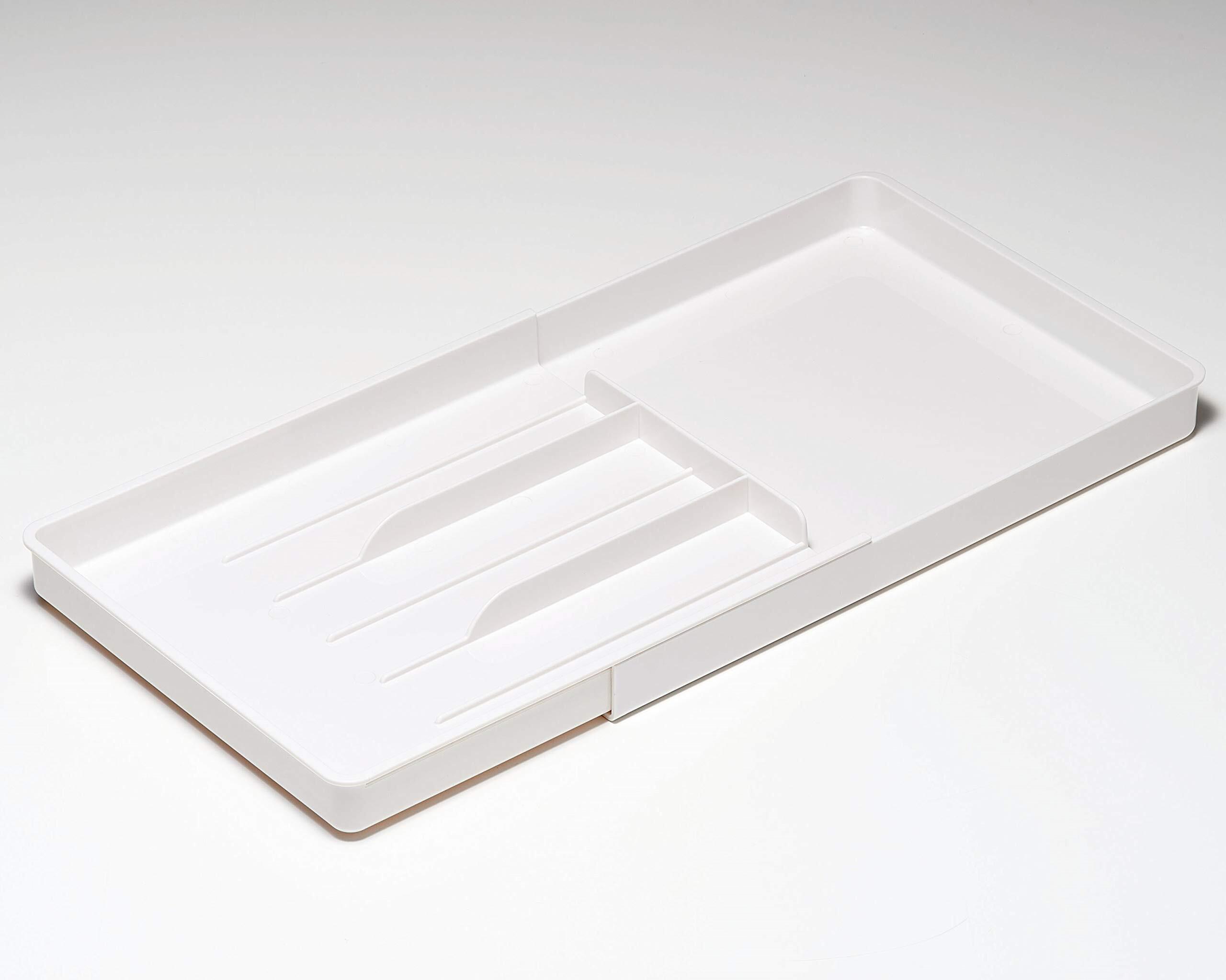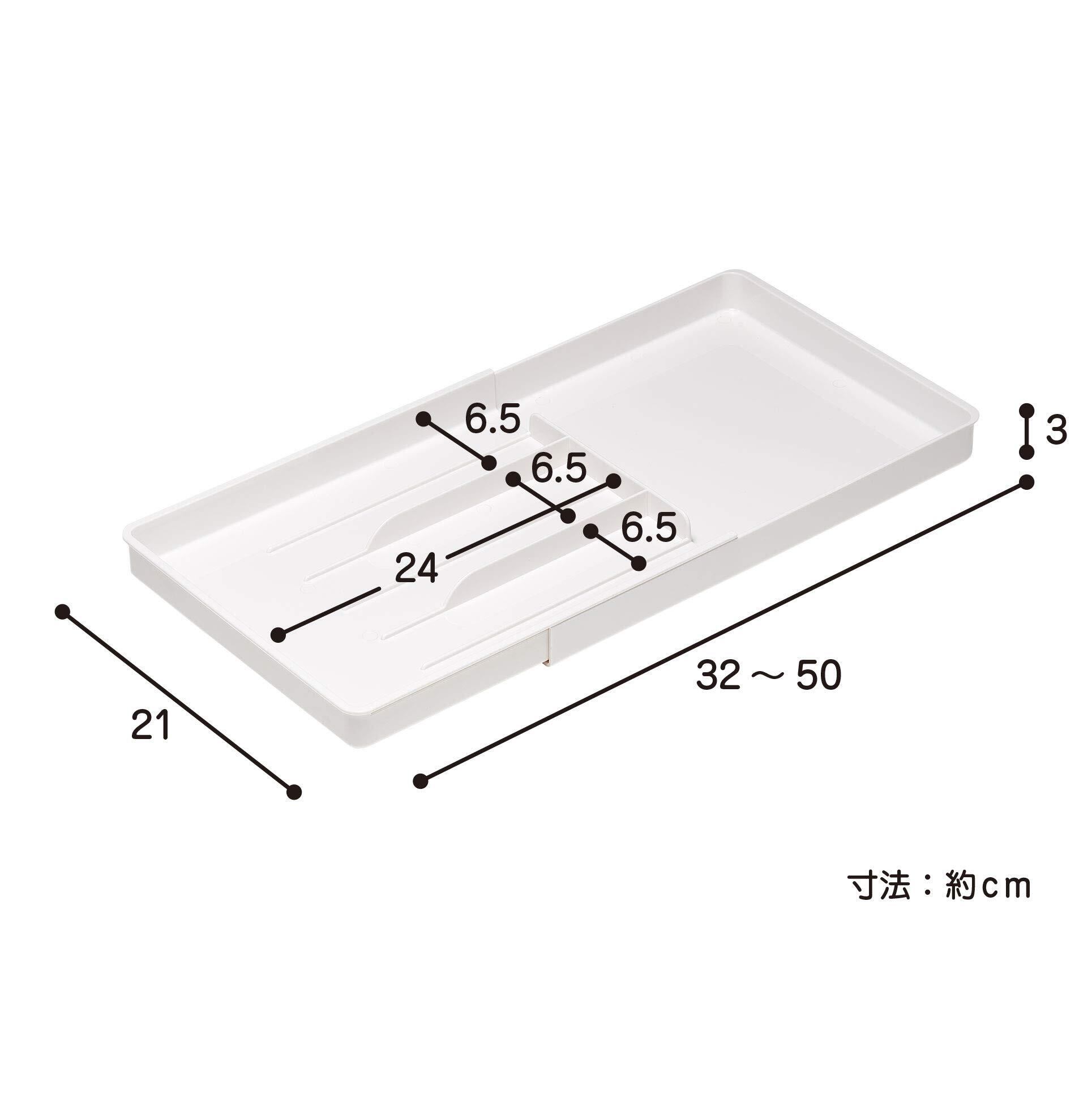 Belca 食器棚収納 伸縮 カトラリートレー L 幅21×奥行32~50×高さ3cm ホワイト スライド式 CT-LW