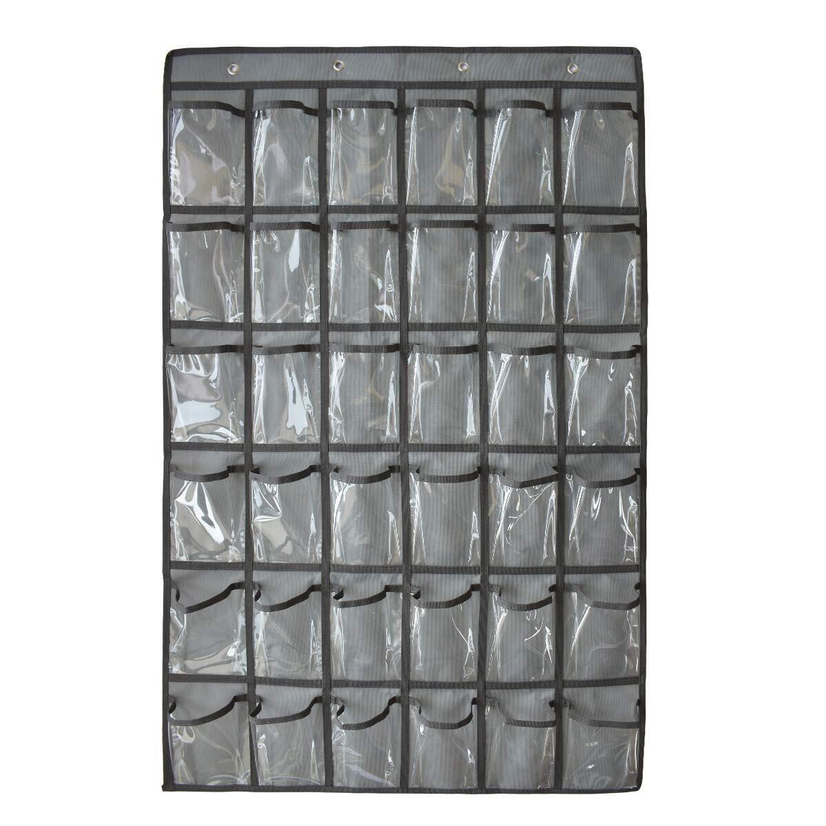 ウォール ポケット カレンダーポケット ポリ塩化ビニル クリア 壁掛け 透明 吊り下げ クローゼット 小物 収納袋 フック付き 2サイズ 12/36 ポケット (グレー,36格)