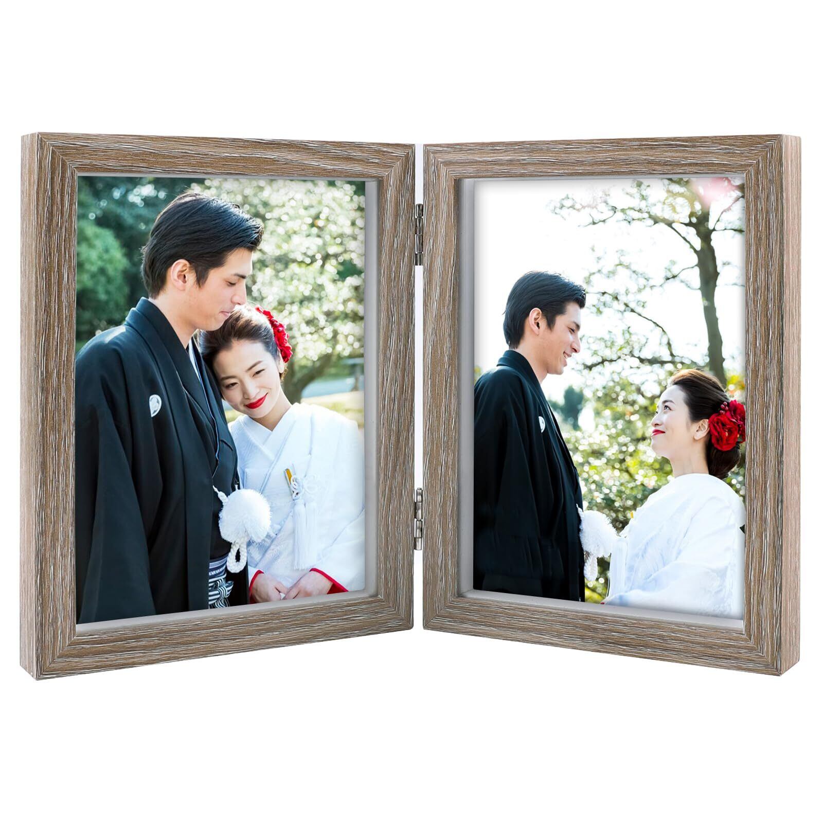 シンプルデザイン: フォトフレームの構造はとてもシンプル,裏板のストッパーを外せば写真の入れ替えができます。 写真立ては180度に折りたたむことができます,多角的に見せることができます。