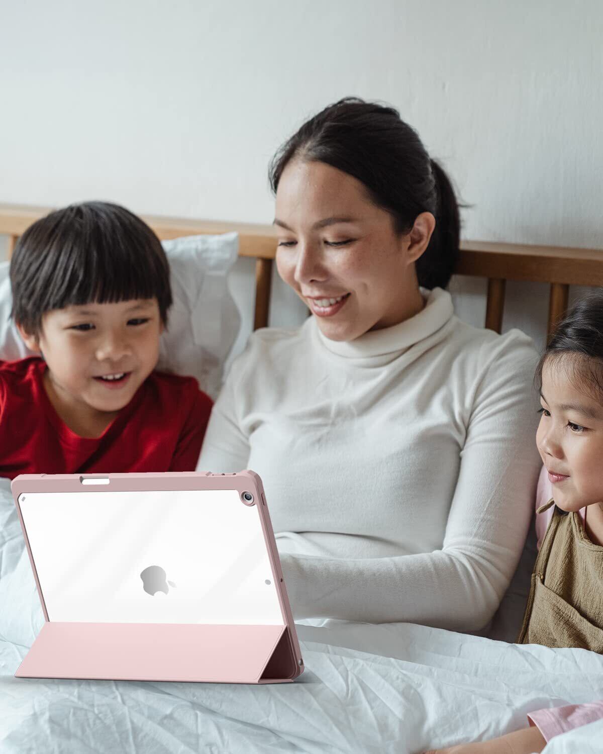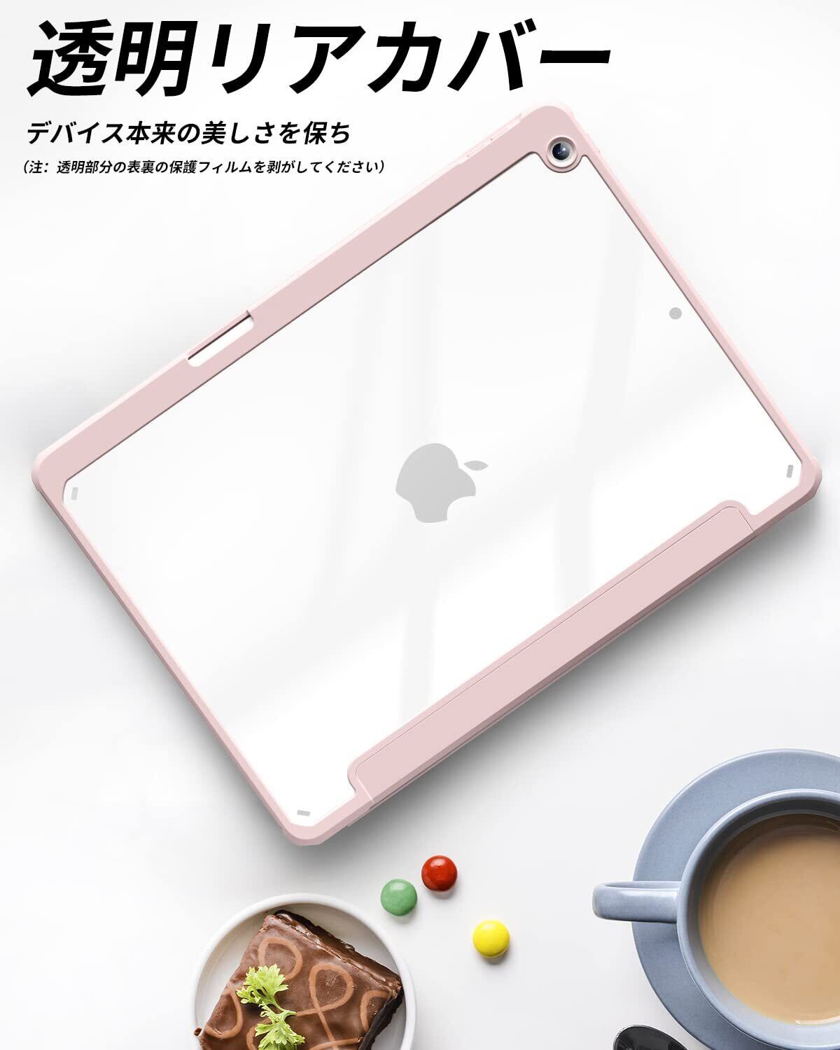 Aoub iPad 9世代 ケース 10.2 インチ iPad ケース 第9/8 /7世代 2021 2020 2019 透明バックカバー ペン収納 三つ折スタンド オートスリープ機能 軽量 薄型 傷つけ防止 PU合成レザー TPU (モデル番号A2602、A2603、A2604、A2605) ピンク