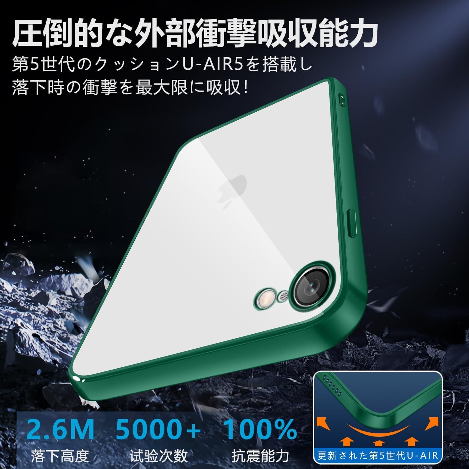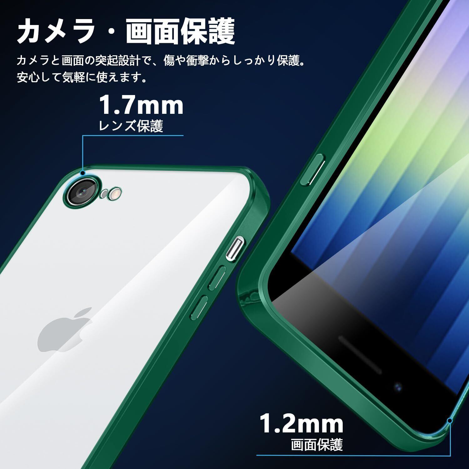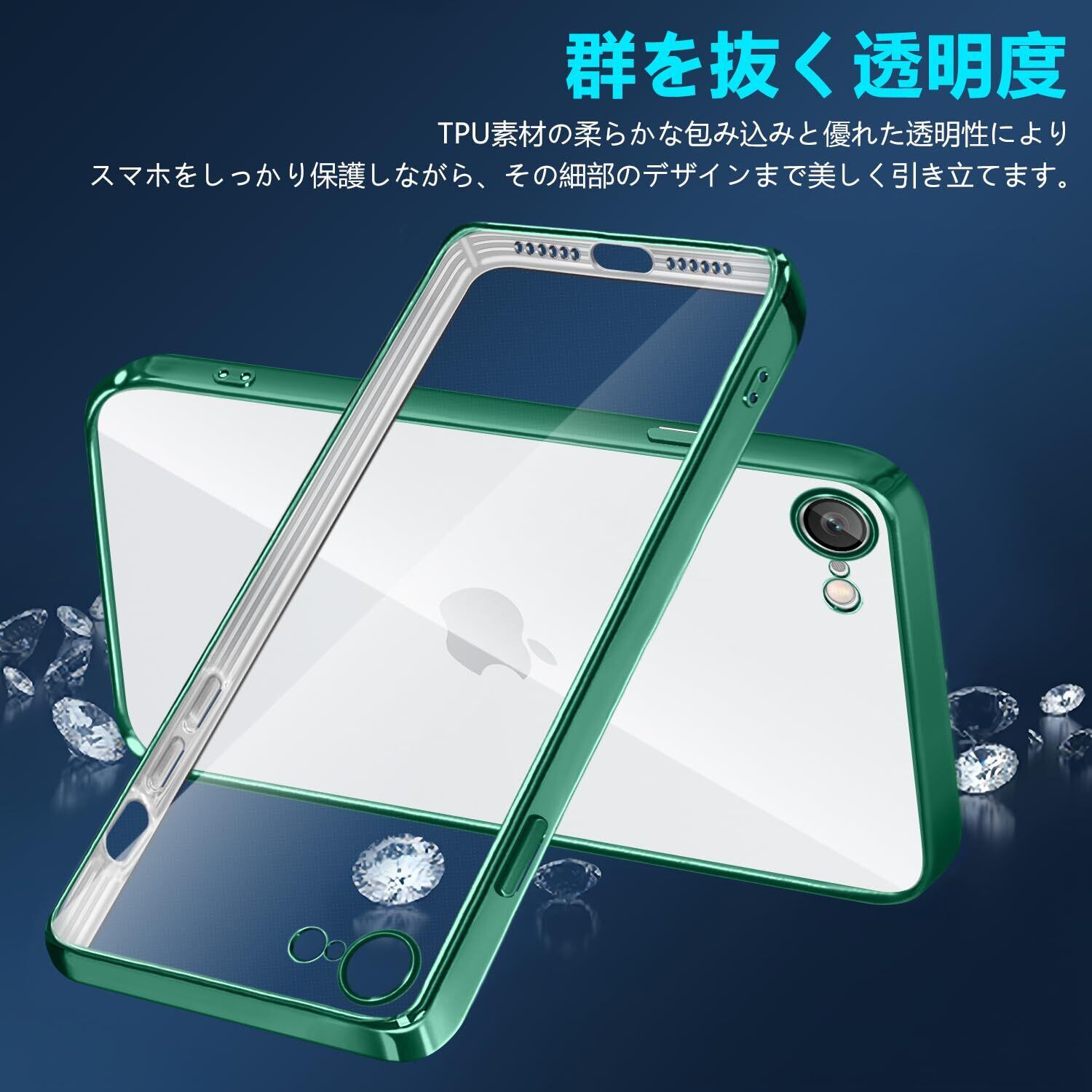 TCJ iphone se se2 se3 7 8 ケース クリア メッキ加工 耐衝撃 滑り止め 落下防止 スマホケース アイホン 第3世代 第2世代 ケース 透明 おしゃれ 韓国 人気 ランキング 衝撃吸収 米軍MIL規格 SGS認証 指紋防止 カメラ保護 携帯ケース ソフト 薄型 ワイヤレス充電対応 Qi充電(グリーン)