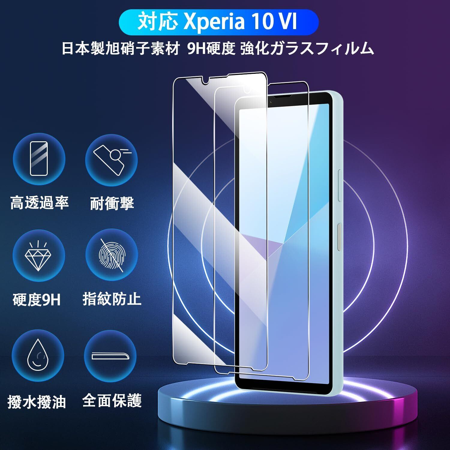 【日本製素材旭硝子製・耐衝撃性、飛散防止でさらに安心!】 対応 Xperia 10 VI SO-52E / SOG14 / XQ-ES44 保護フィルム 日本製旭硝子素材、9H硬度。ポケットの中の鍵やコインなど、様々なものからスマートフォンを保護します。 またハードコーティング技術により、強度を普通より3倍以上アップしており、により外部からの衝撃をフィルムが吸収し、画面へのダメージを最低限まで抑えました。防爆、耐スクラッチ性、落下防止。特殊な飛散防止設計により、万一割れてしまった際にも飛散することなく、高い安全性を実現します。長く安心して使えます。