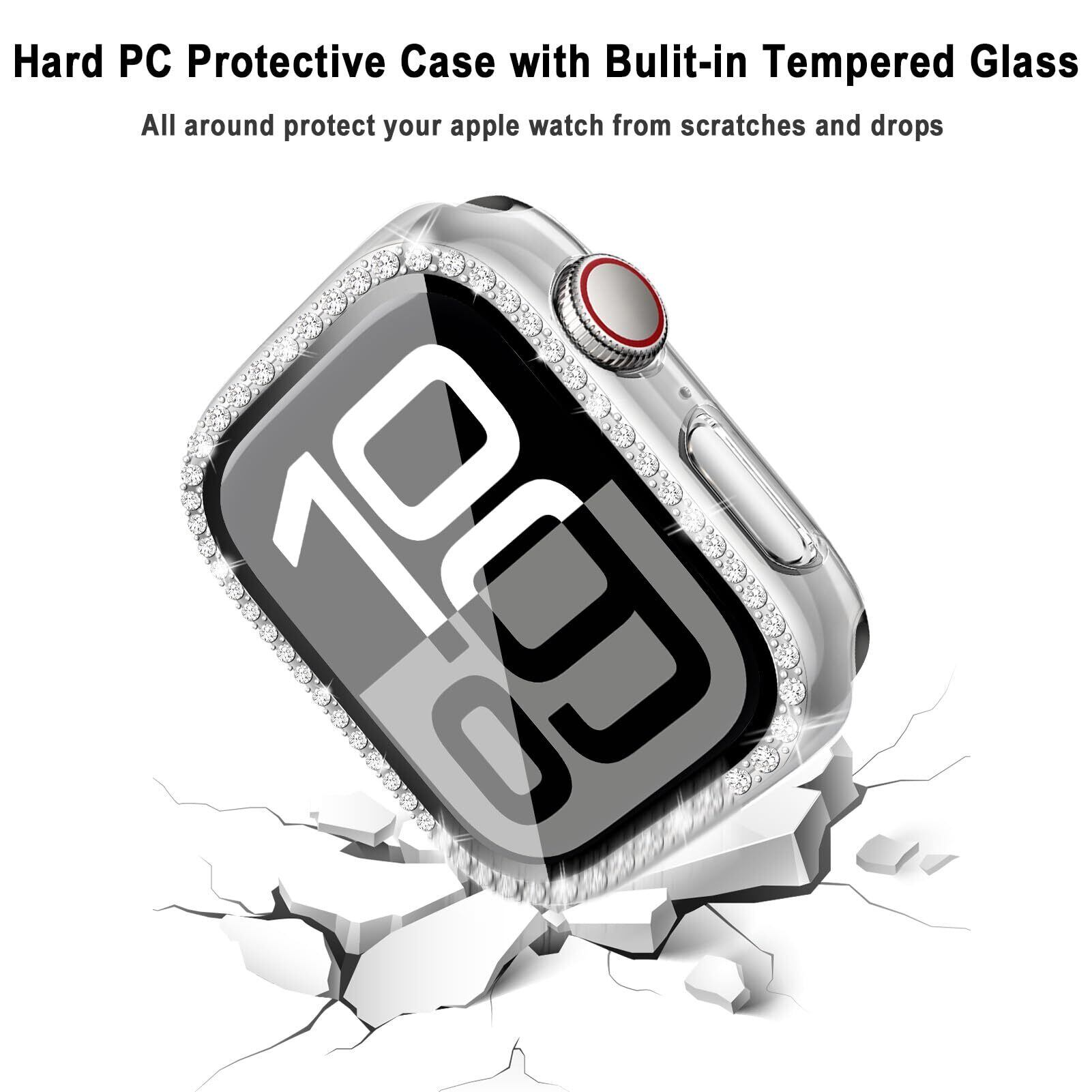 【人気商品】【2色セット】コンパチブル アップルウォッチ カバー 42mm 46mm 41mm 40mm 44mm 45mm レディース、コンパチブル apple watch ケース 10 9 8 7 5 6 4 se、キラキラ 可愛い 耐衝撃 保護ケース フィルム付き PC 女性 装着簡単、40mm ブラック/透明