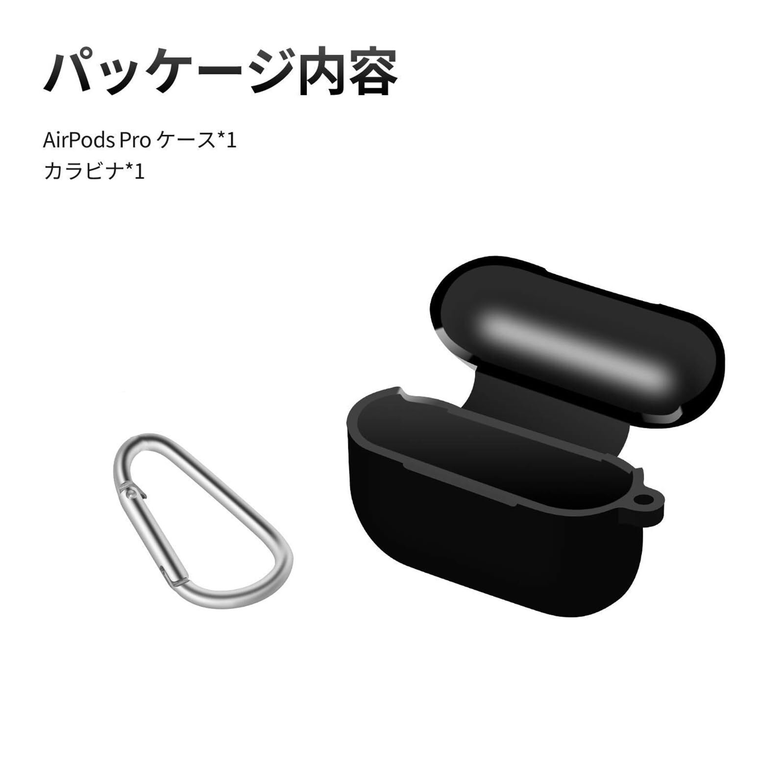 AirPods Pro/AirPods Pro2 用 ケース (2024/2023/2022/2019) エアーポッズ プロ 用 シリコンケース 全面保護カバー 落下防止 耐衝撃 装着充電可能 防水 防塵 カラビナ付き AirPods Pro用のケース (ブラック)