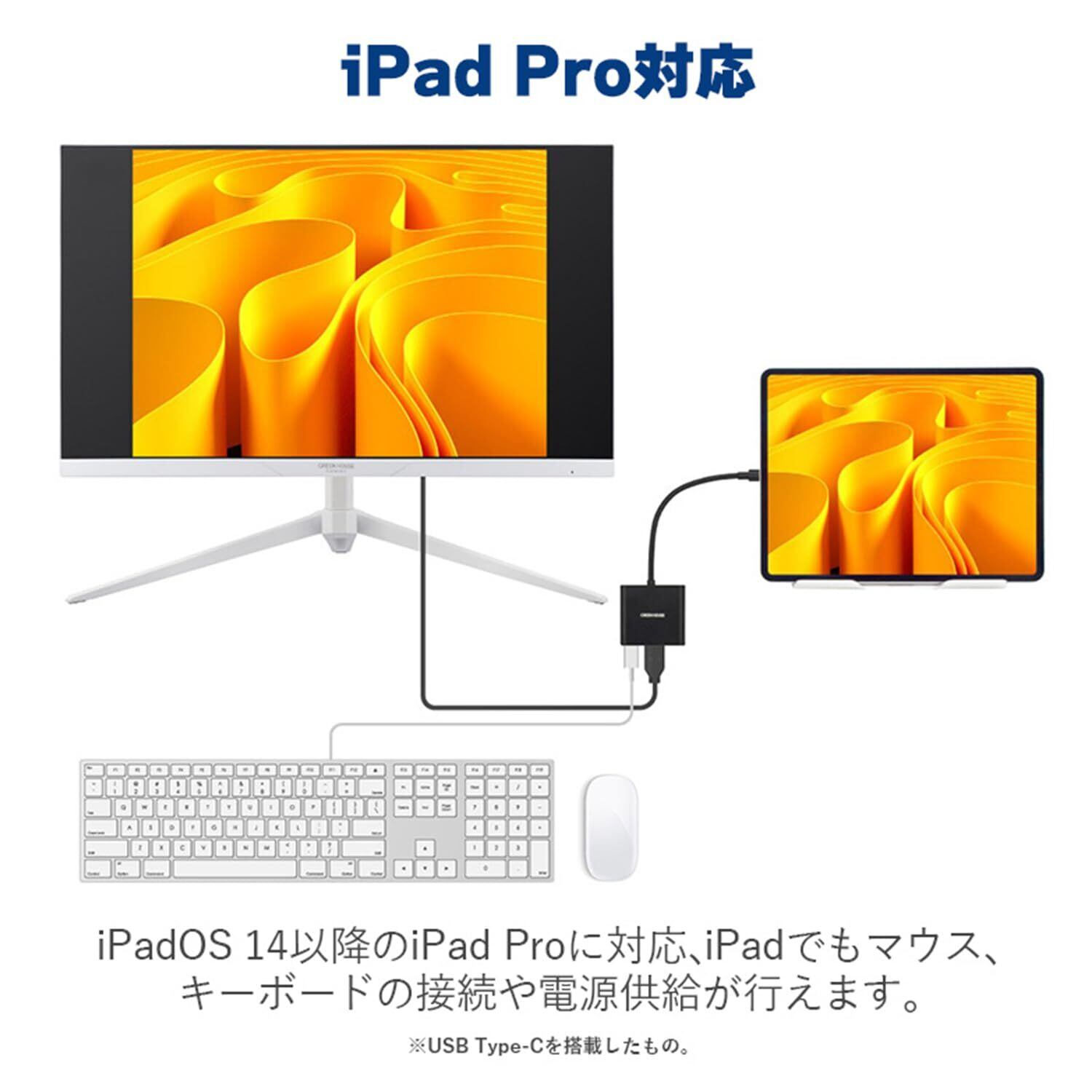 コンパクトで持ち運びやすく、放熱性に優れたメタルボディ。iPadOS 14以降のiPad Proに対応、iPadでもマウス、キーボードの接続や電源供給が行えます。※USB Type-Cを搭載したもの。