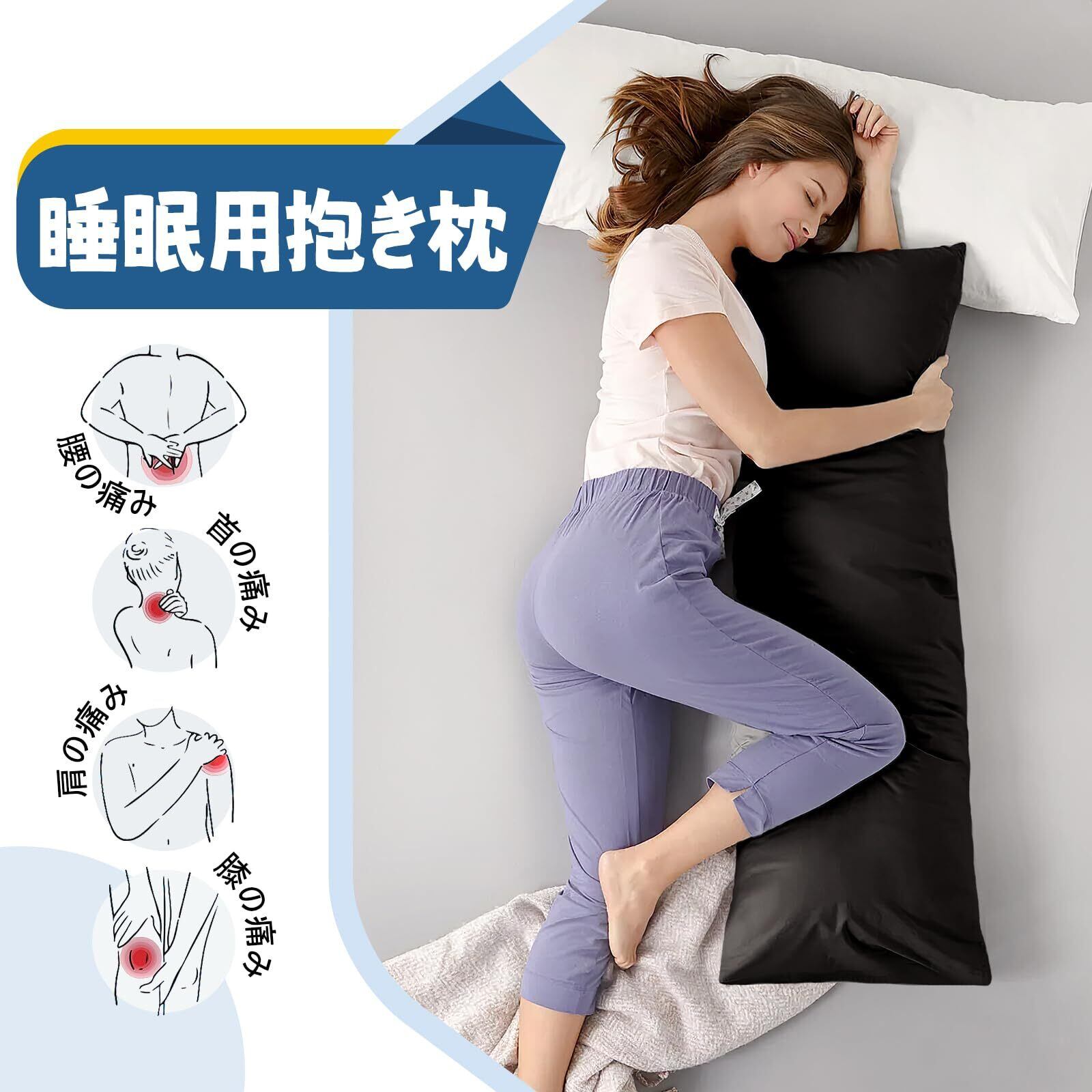抱き枕 だき枕 本体160x50 だきまくら大きいサイズ 長い枕 女性 男性用横向き寝 枕 背もたれクッション 抱きまくら安眠枕 等身大抱き枕 ロングクッション (ブラック, 160x50cm)
