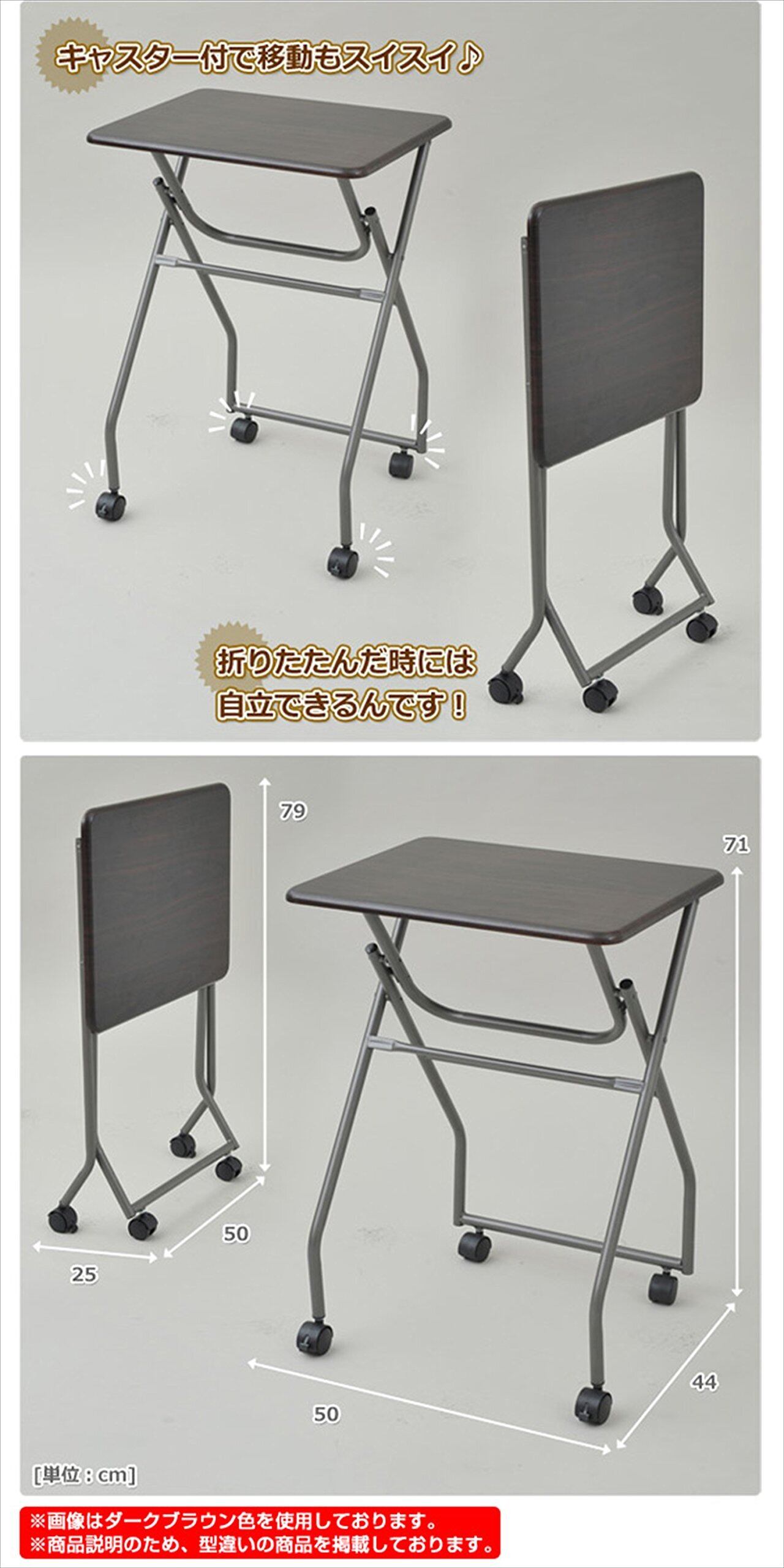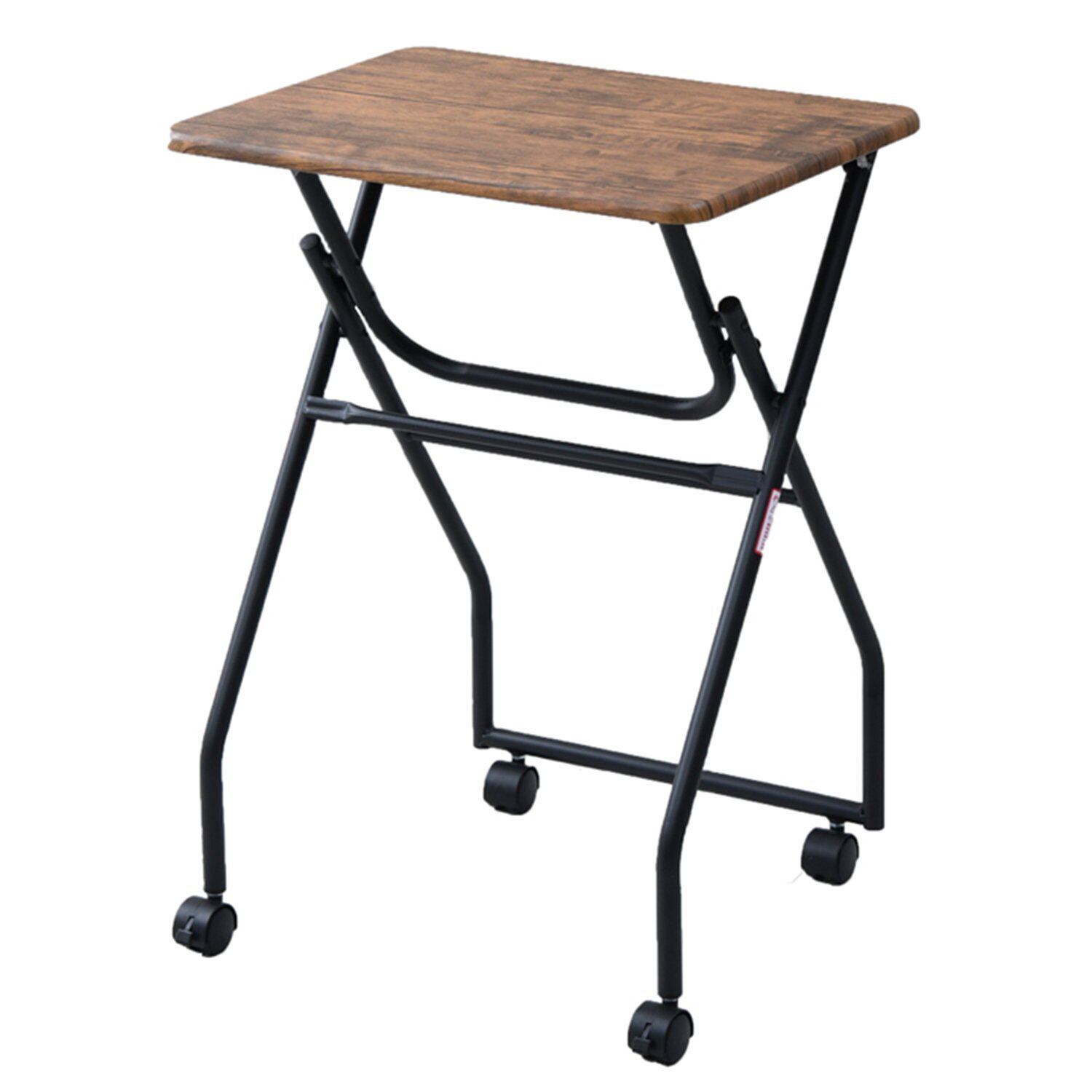 山善(YAMAZEN) テーブル ミニ 簡単組み立て 折りたたみ式 キャスター付き サイドテーブル 幅50×奥行44×高さ70.5cm アンティークブラウン MST-5040(ABR/SBK)