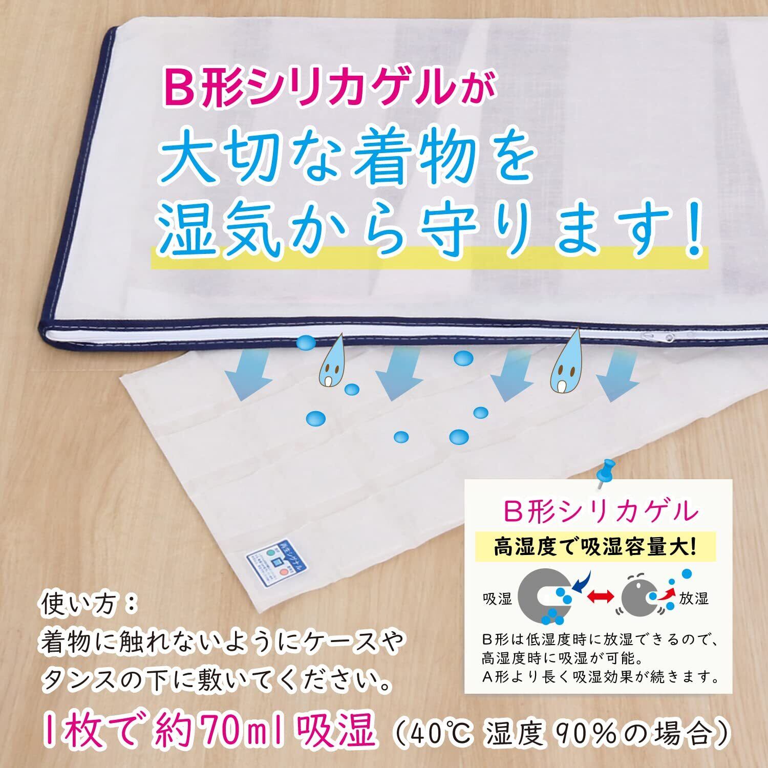 ●着物収納ケースに入れて使えるシリカゲル入りの除湿シート。