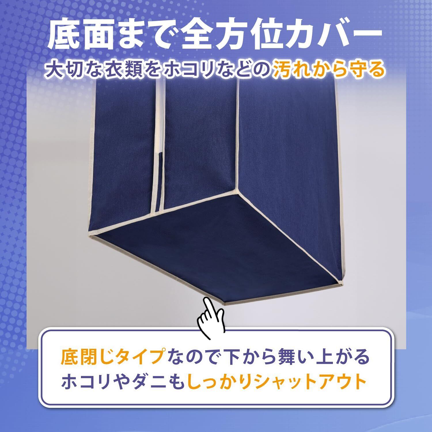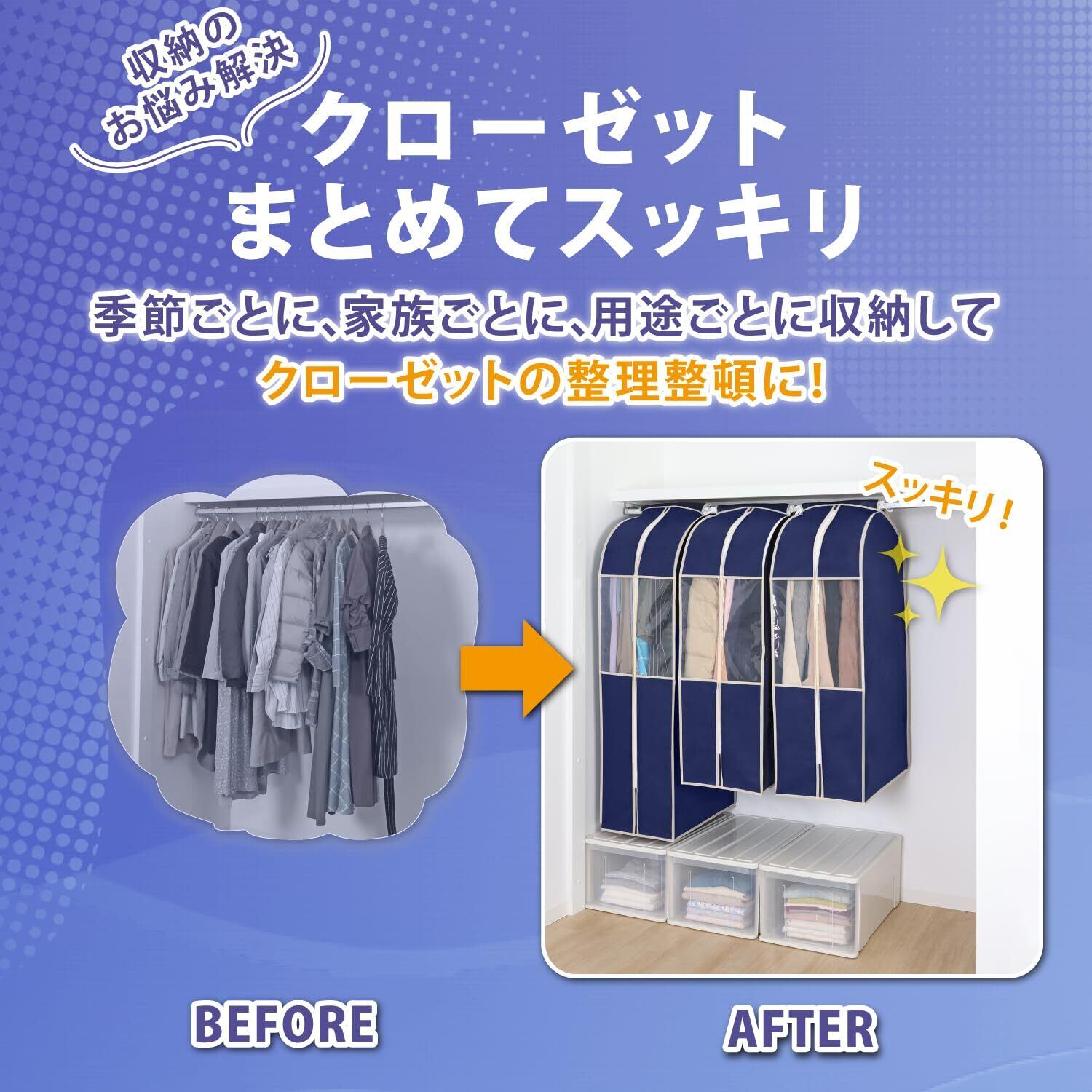 【衣類をまとめて保管】:オフシーズンの洋服をまとめてホコリなどの汚れから守ります。5~7枚までの衣類の保管が可能。