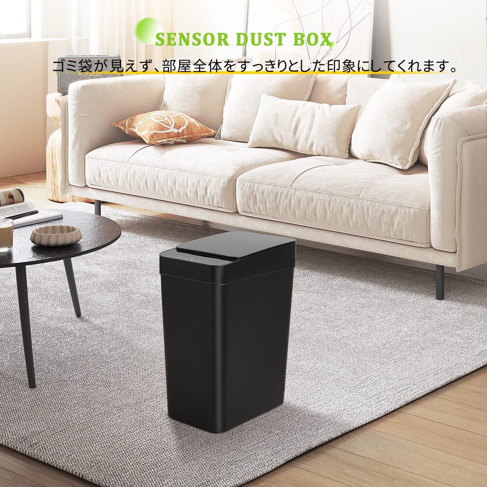 ️「人感反応センサー&振動センサー付き」ご注意:蓋操作パネルの表面に透明保護フィルムを剥がせる。センサーの上方20cm付近に手をかざすと自動でフタが開き、約5秒後にフタが閉まります。不要な接触を控えることができるため衛生的です。また、足元で軽くタッチするだけで開く機能も搭載します。本体い振動を与えることでセンサーが感知し自動的に蓋が開閉する。両手がふさがって手で操作ができない時などに便利な機能です。