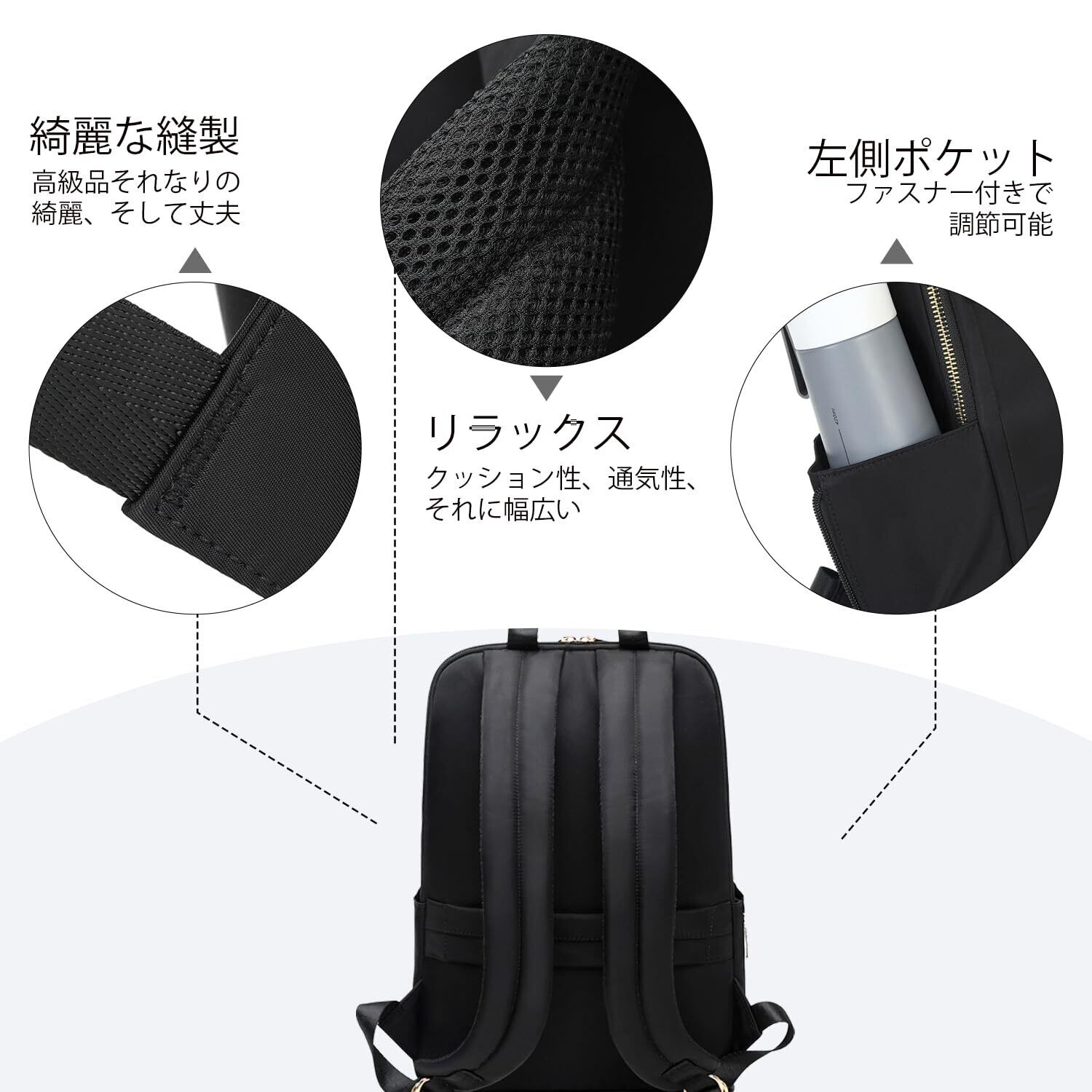 【優良な素材を採用した】高密度オクスフォードを採用するもので、手触りが柔らかくて耐摩耗性にも強いです。生地表面には撥水加工が施されているため、雨の日でも安心してご利用いただけます。