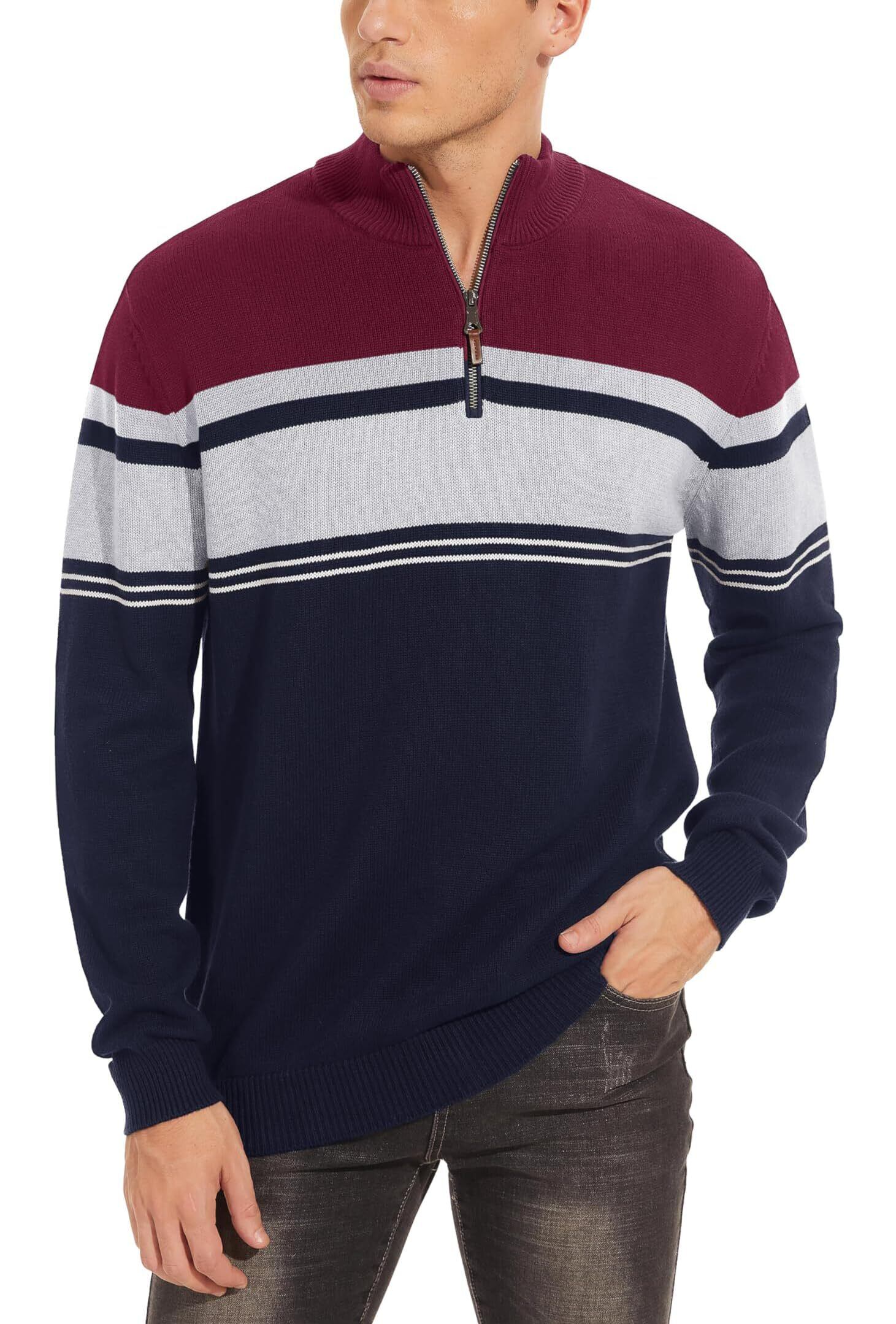 【特価セール】[TACVASEN] タートルネック メンズ セーター 秋 ゴルフウェア カジュアル ビジネス ニット 暖かい ハーフジップ 綿 日常着 大きい 冬 長袖 トップス 防寒
