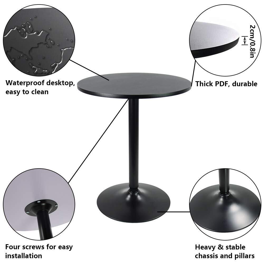 KKTONER バー丸テーブル カウンターテーブル カフェテーブル 2人用 ダイニングテーブル 机 幅60cm ブラック (黒)