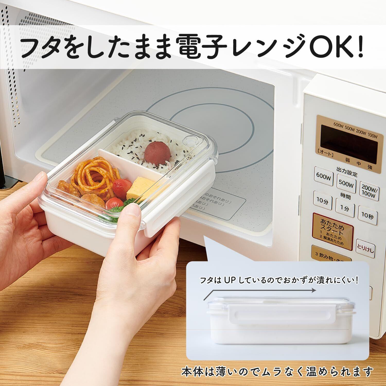 ふたをしたまま電子レンジOK。加熱時間の目安:解凍状態で、500W 3〜4分 冷凍状態で、500W 4〜5分(または解凍モードを使用後に500Wで加熱) ※水分の少ない食品や食品の量が少ない場合、加熱時間を短くしてください。※油分の多い食品の加熱は避けてください。過度に加熱される場合があります。