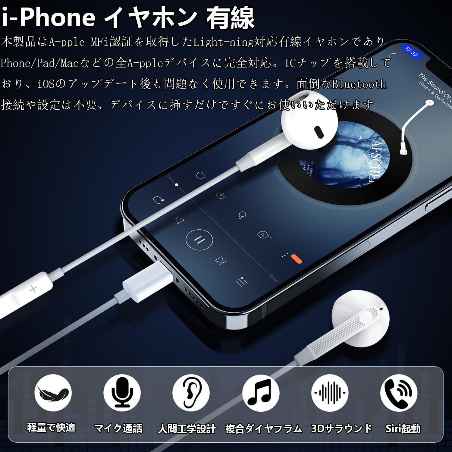 【人気商品】イヤホン 有線 マイク付き iPhone用の【MFi認証品】ライトニング用の イヤフォン ノイズキャンセリング HiFi音質 磁気設計 カナル型 イヤホンマイク 通話可能 音量調整 無遅延 快適な装着感 iPhone14用のなどIOSデバイスに対応 (ホワイト)