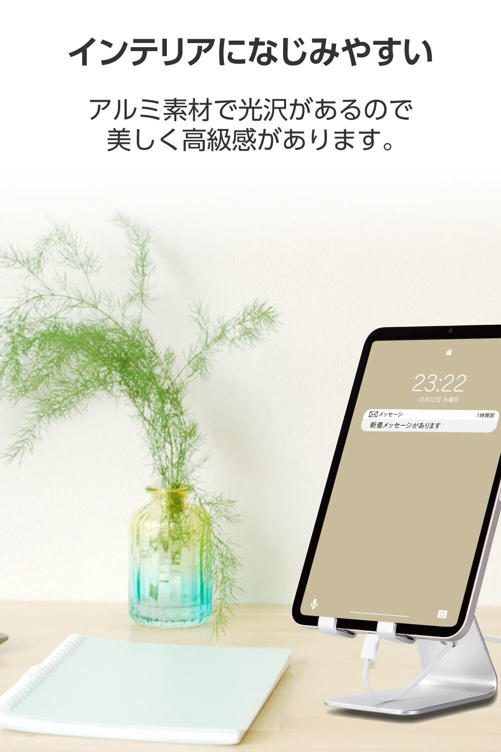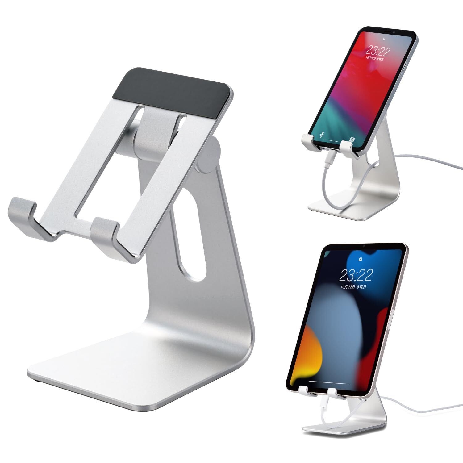 ■スマートフォン、タブレット、NINTENDO SWITCH(TM)、NINTENDO SWITCH(TM)(有機ELモデル)、NINTENDO SWITCH(TM) Liteを充電しながら使用できる、自由に角度調節が可能なフリーアングルスタイルのアルミスタンドです。