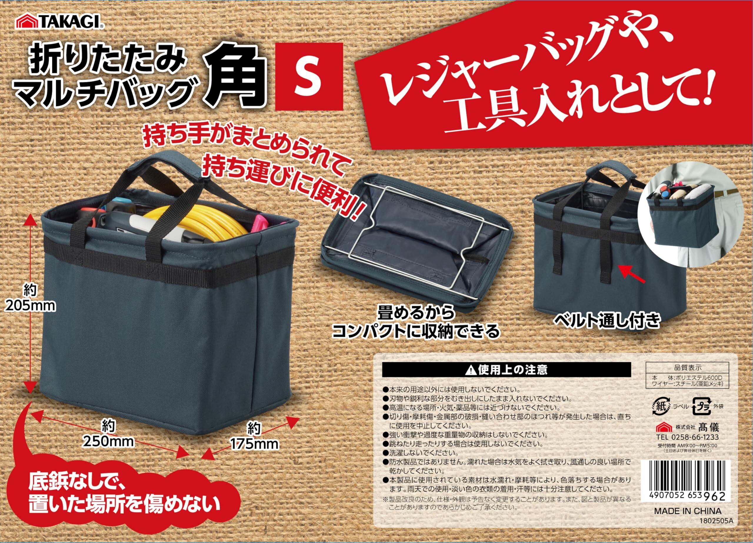 高儀 道具袋 折りたたみ マルチバッグ 角 ネイビー S TAKAGI 折り畳めるからコンパクト収納 4907052653962