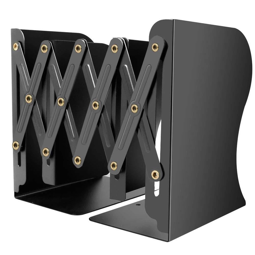 【在庫セール】ブックスタンド 伸縮自在 オフィス 本立て 卓上収納 本/雑誌/書類入り ブックエンド 倒れない 仕切りスタンド 金属製 おしゃれ 整理用品 (ブラック)