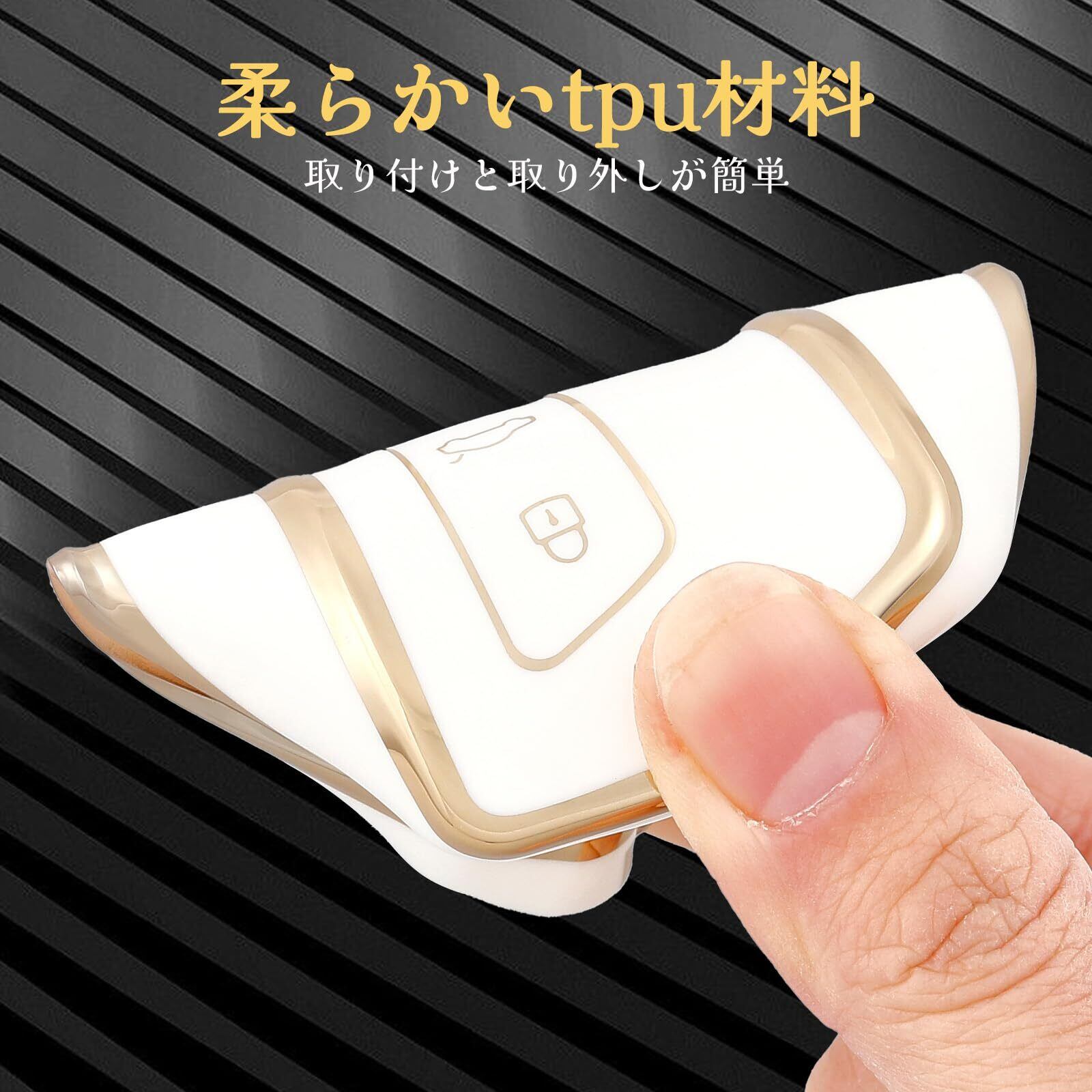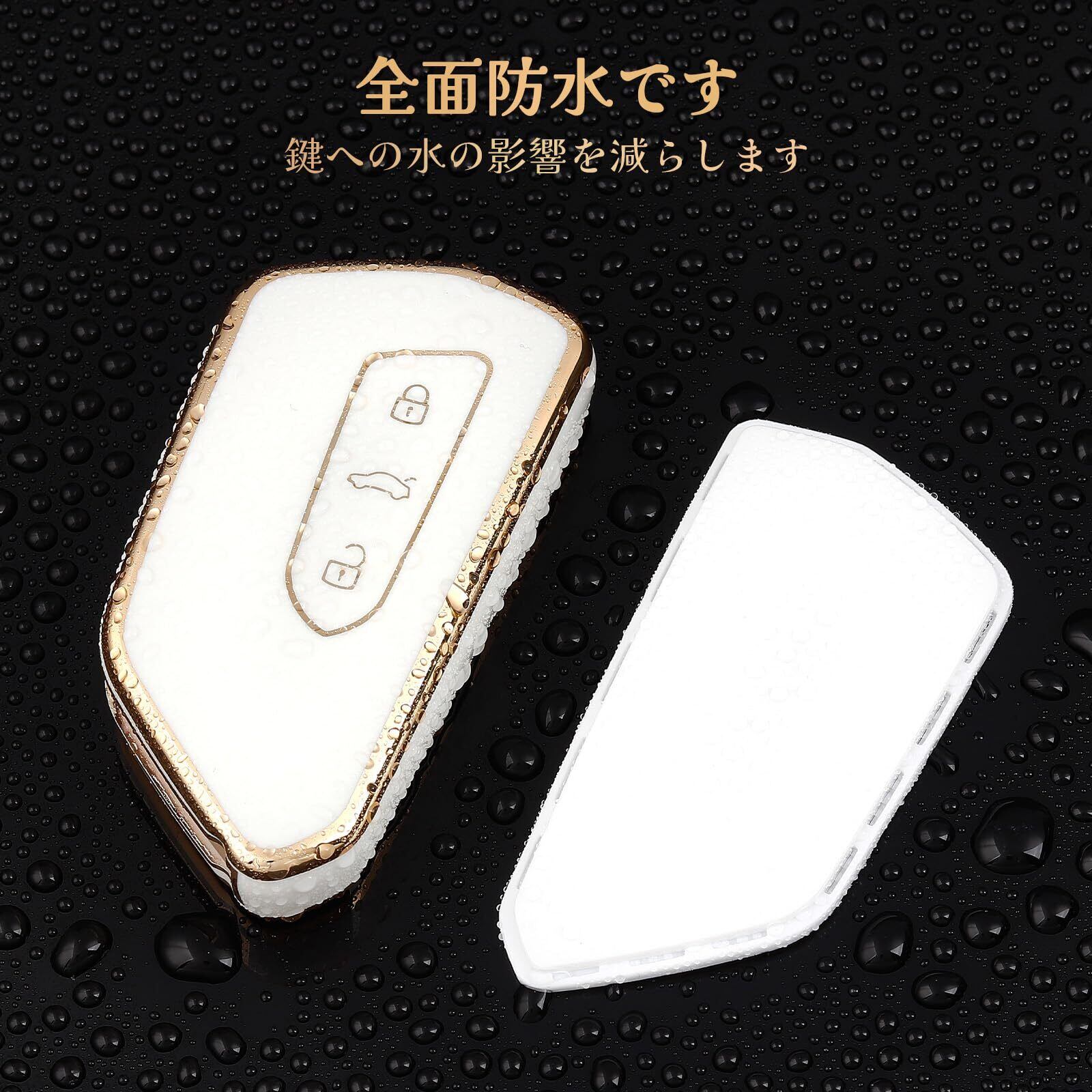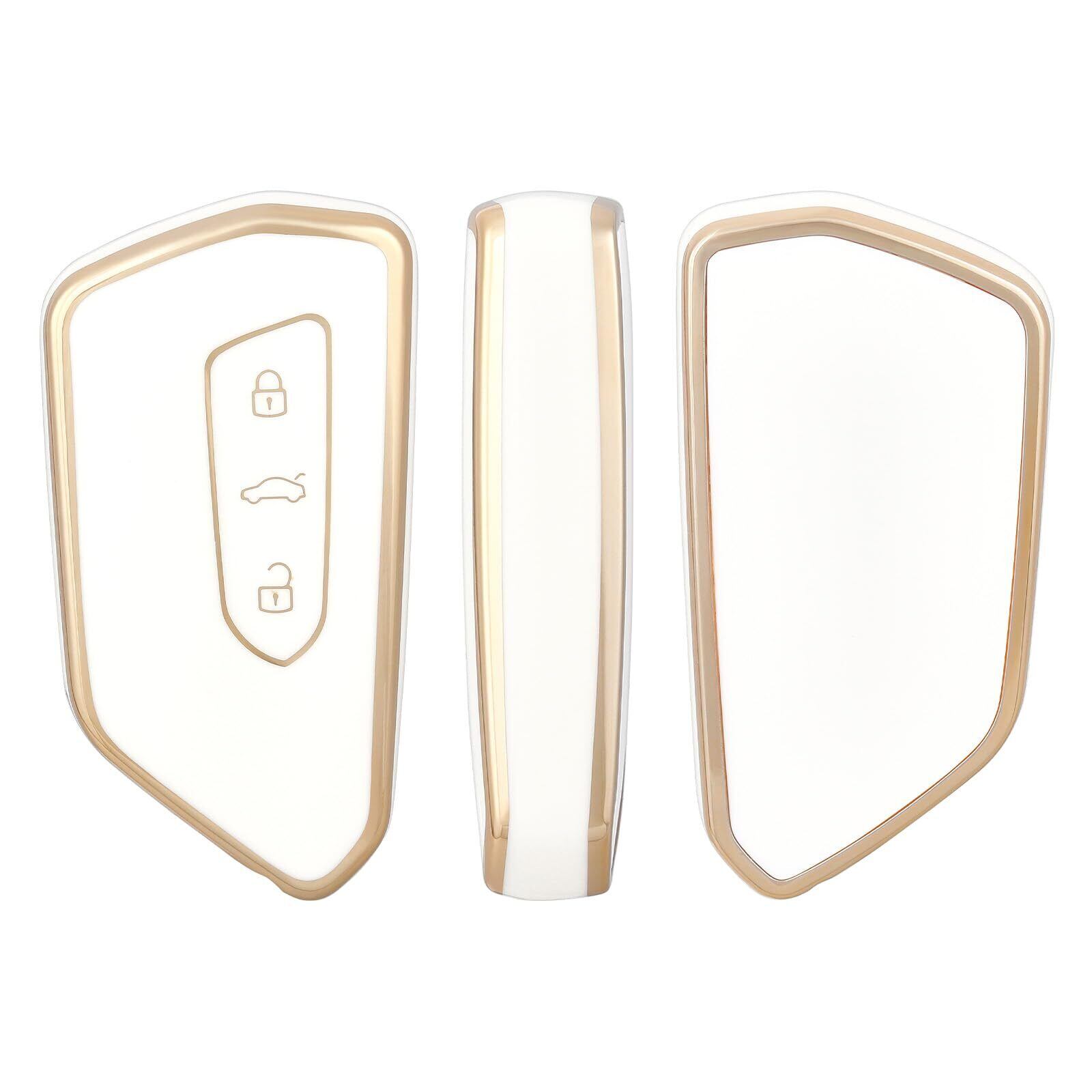 【新春セール】キーケース TPU 車のキーカバー キーシェル 互換 新型VW Golf 8 GTE GTI アテカ タラコ エンヤックiV 60 キュプラ フォルメントール リモコンケース 互換スマートキーケース, 3ボタン, ホワイトゴールド