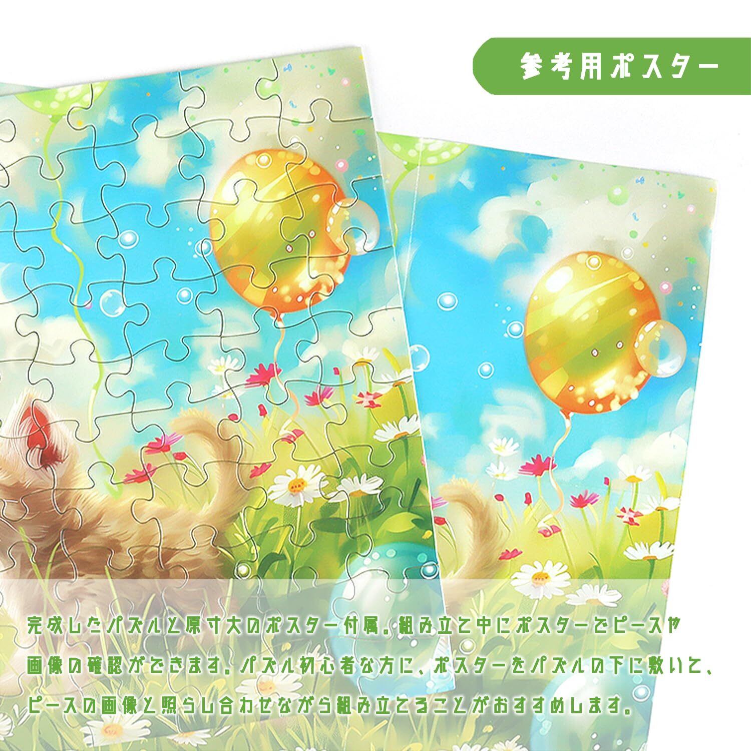 ピースタイプ:ラージピース(ピースサイズ約3×4cm) ピース数:100ピース 難易度: 仕上がりサイズ:28.8 x 41 cm パッケージ内容:ジグソーパズル 100ピース、仕上がり参考図1枚 *パズルのりはパッケージに含みません、ご注意ください。