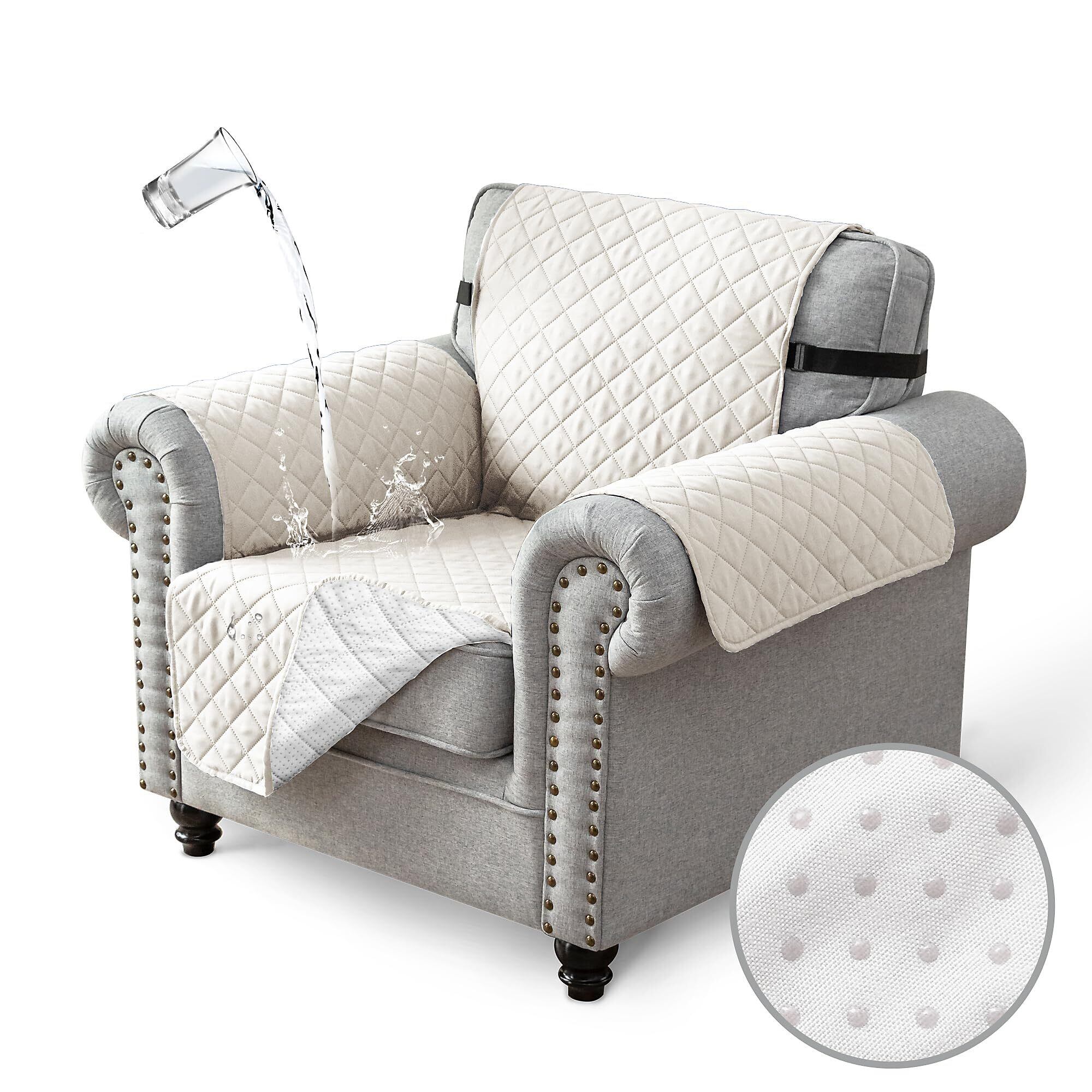 TIANSHU ソファーカバー 1人掛け 防水 マルチカバー 肘付き 犬猫対策 ソファーマット 滑り止め 撥水加工 ソファカバー 無地 シートカバー 傷防止 爪とぎ防止 防塵 汚れ防止 洗える 四季適用 (アイボリーホワイト)