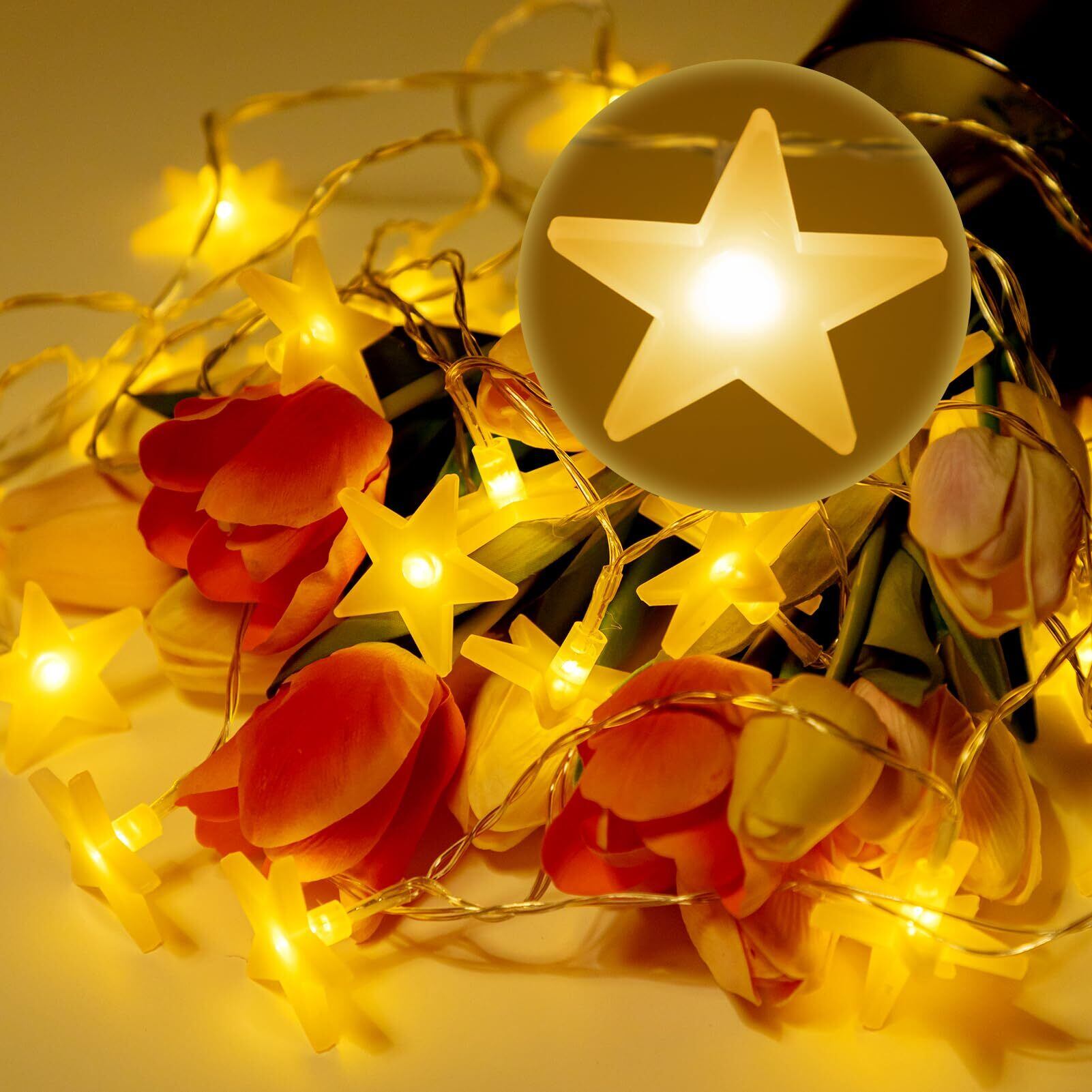 星型 おしゃれ LED フェアリーライト 電池式 星型 省エネ 8種照明モード 防水IP44 クリスマスツリー飾り カーテンライト 飾りスター ガーデン・イベント・パーティー・結婚式・学園祭最適 (ウォームホワイト/4.5m /30球) クリスマスストリングライト