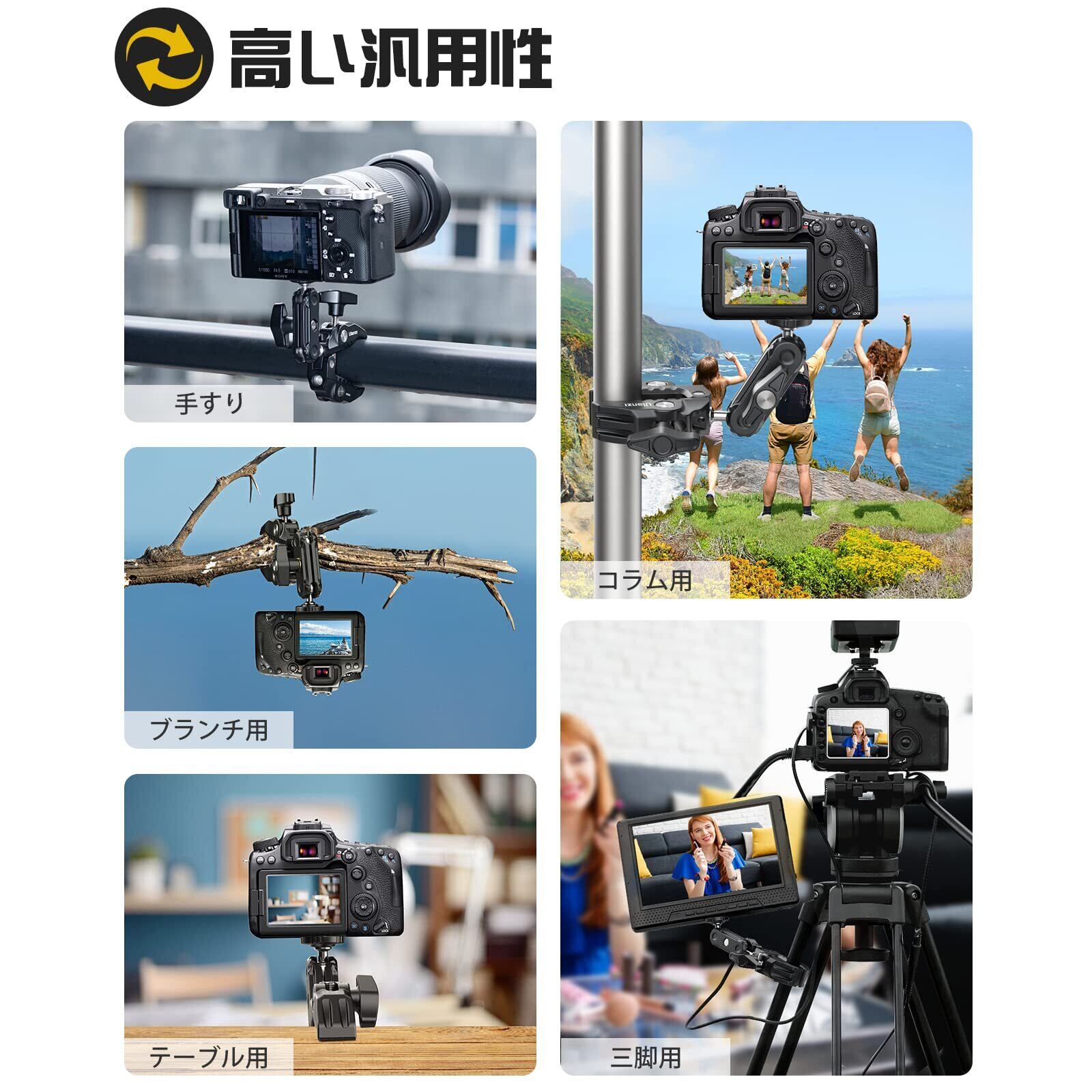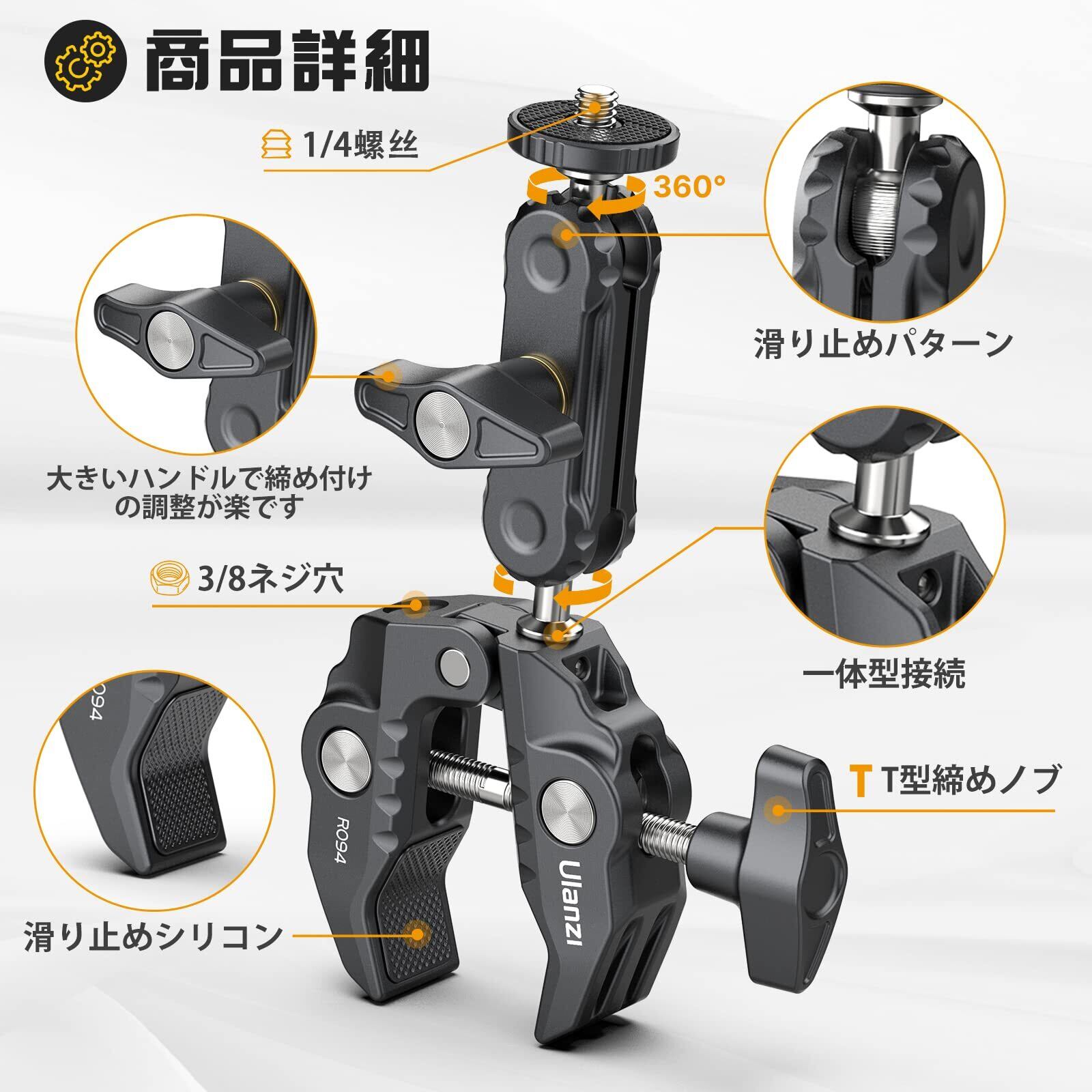 Ulanzi R094 スーパークランプ ボールヘッドアーム 緩み防止 蟹バサミクランプ マジックアーム 360度回転 1/4インチネジ 偏向防止 雲台/撮影 照明機材 固定 デスク アーム バイク ベストアングル プロジェクター ウェブカメラに対応