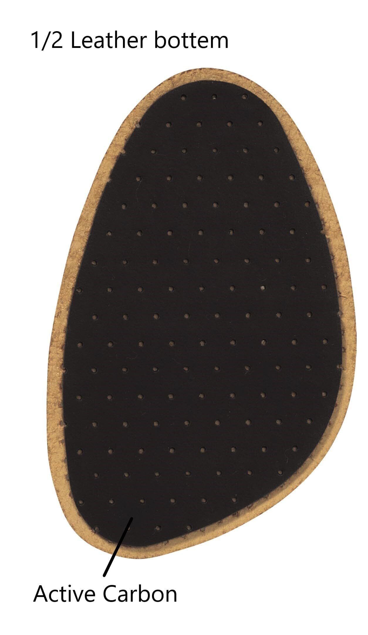 【ヒール靴にも使える! 微調整に最適な万能ハーフインソール】 サイズの微調整はもちろん、活性炭配合のラテックスクッションがつま先の衝撃を和らげつつ、靴内のニオイを抑えます。 表面には吸湿性の高い植物性タンニンなめしの天然皮革を使用しており、足裏の汗を吸収し前足部を快適な状態に保ちます。 つま先用なので、ヒール靴にも使用でき、足の負担を軽減してくれます。