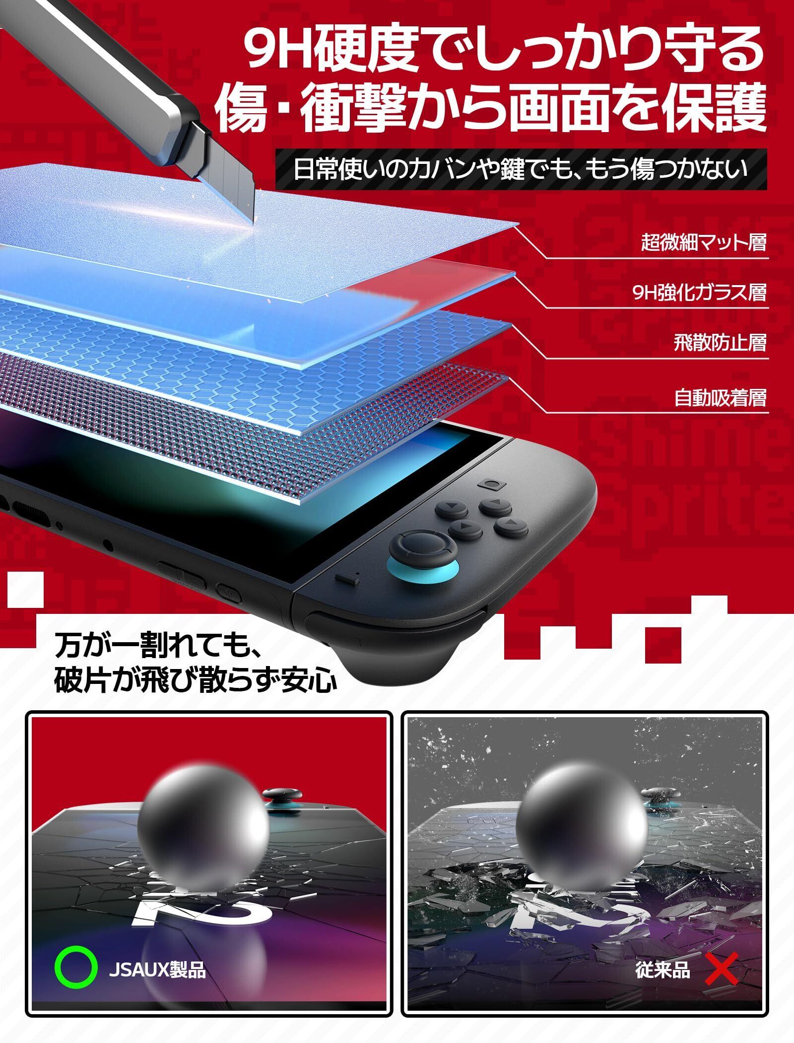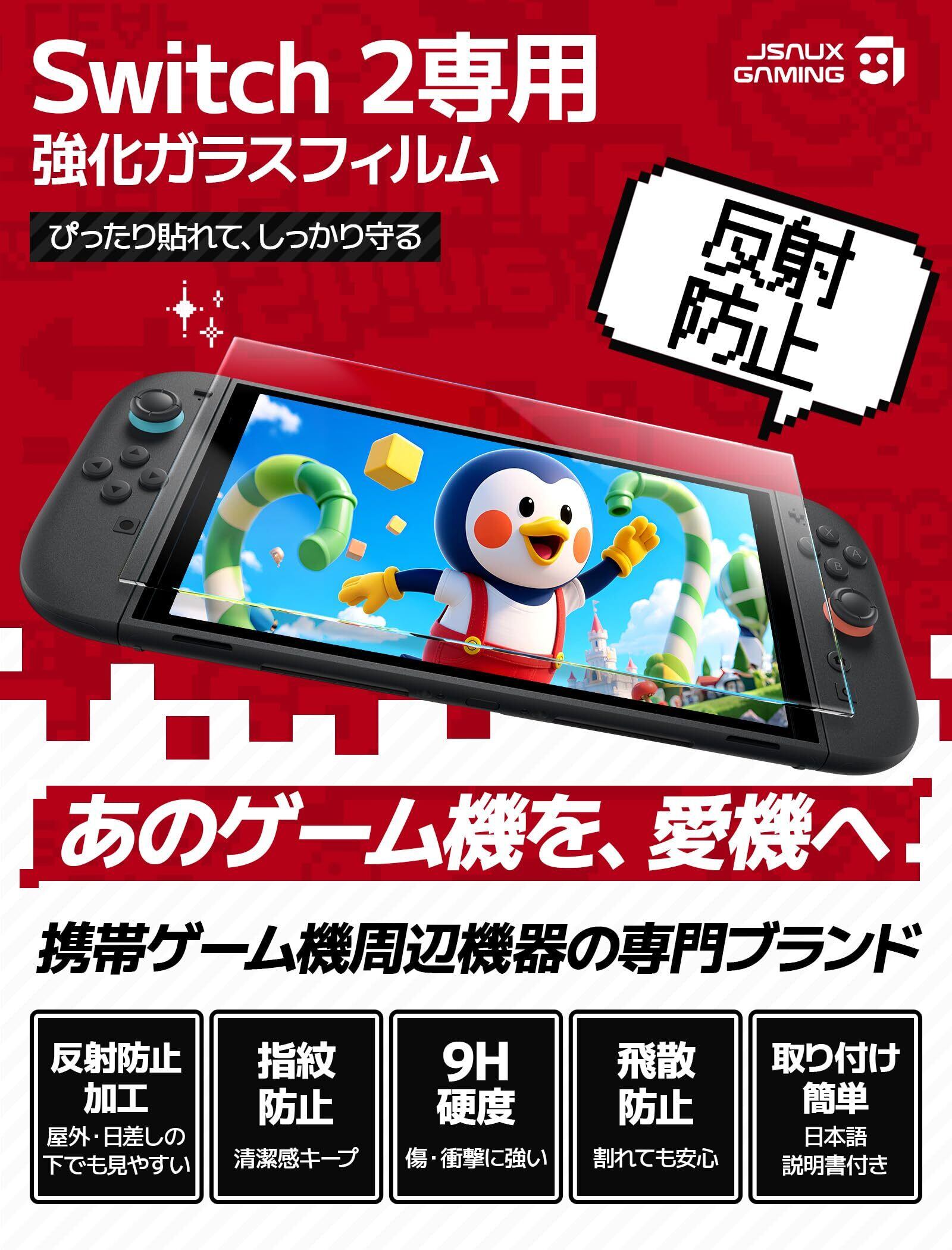 【在庫処分】JSAUX 対応 スイッチ2 / Switch 2 保護フィルム【3枚セット】反射防止マット加工・簡単ガイド枠付き・全画面保護・9H硬度・指紋防止・スムーズな操作・気泡ゼロ・超薄型・ドック対応