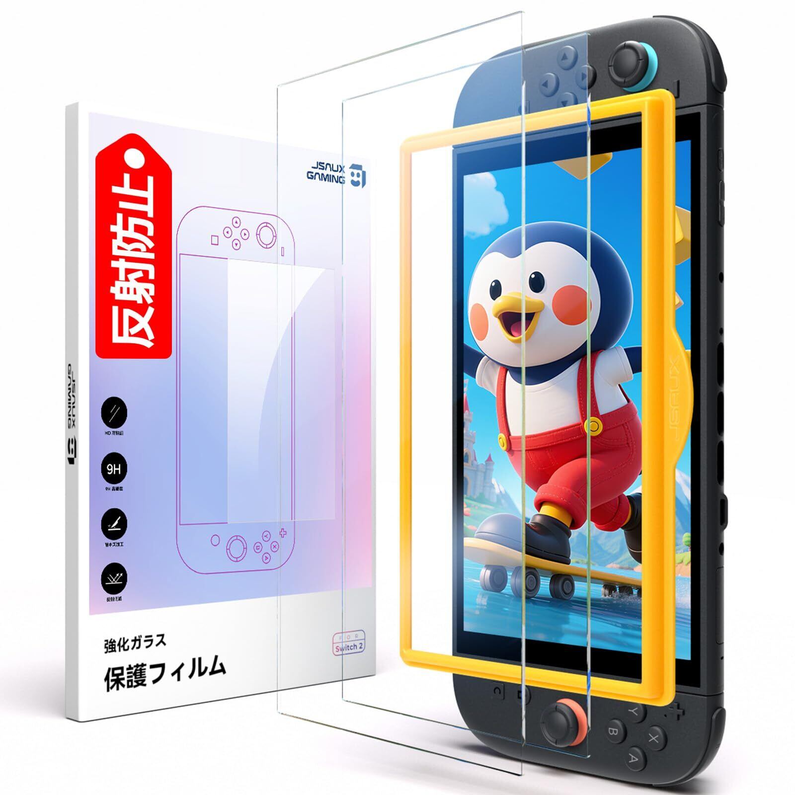 JSAUX 対応 スイッチ2 / Switch 2 保護フィルム【3枚セット】反射防止マット加工・簡単ガイド枠付き・全画面保護・9H硬度・指紋防止・スムーズな操作・気泡ゼロ・超薄型・ドック対応