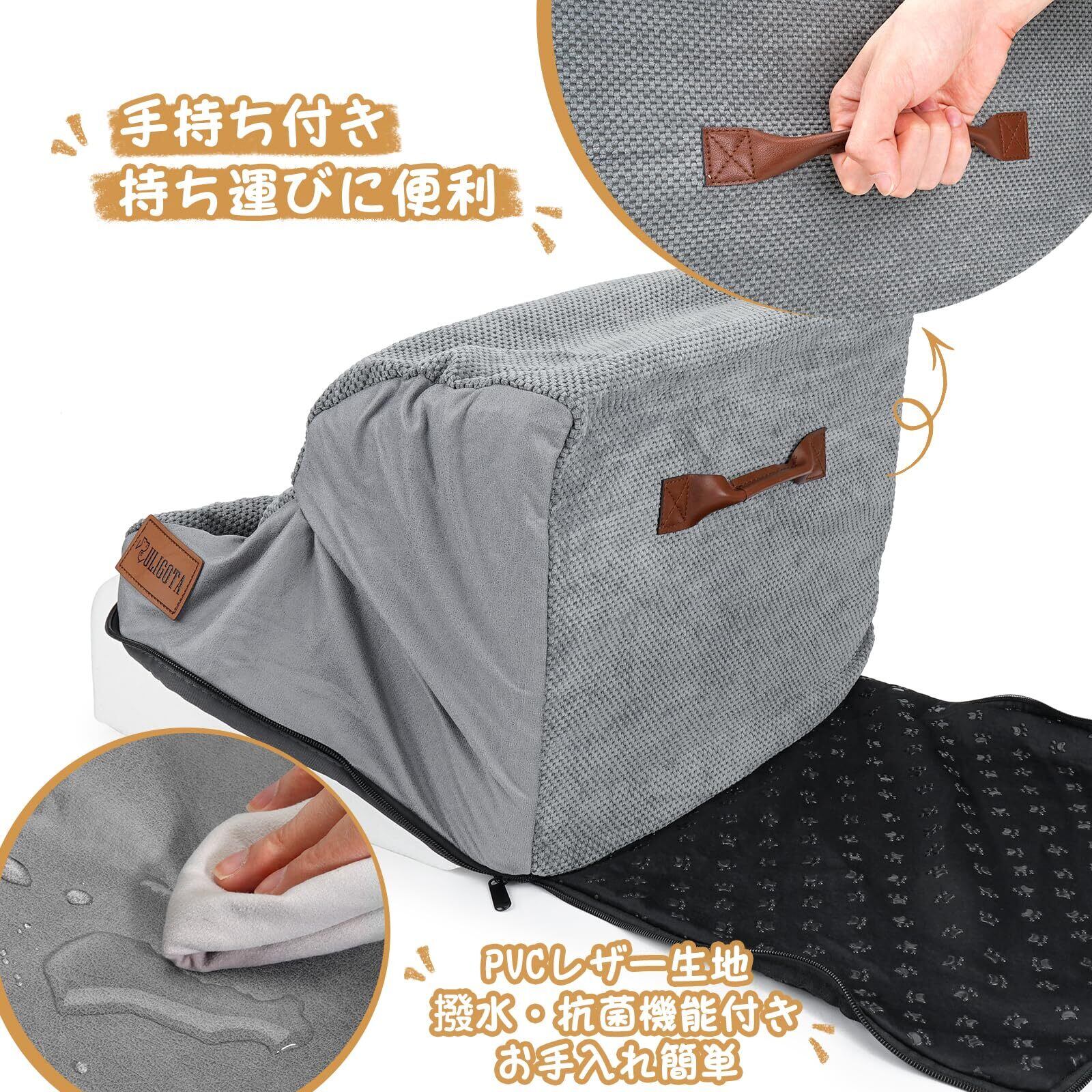 犬用ステップ 2段 ドッグステップ 犬用スロープ 犬用踏み台 犬用階段 小型犬 室内犬 高齢犬 滑り止めマット付き カバー取り外し 洗える 手持ち付き(グレー)