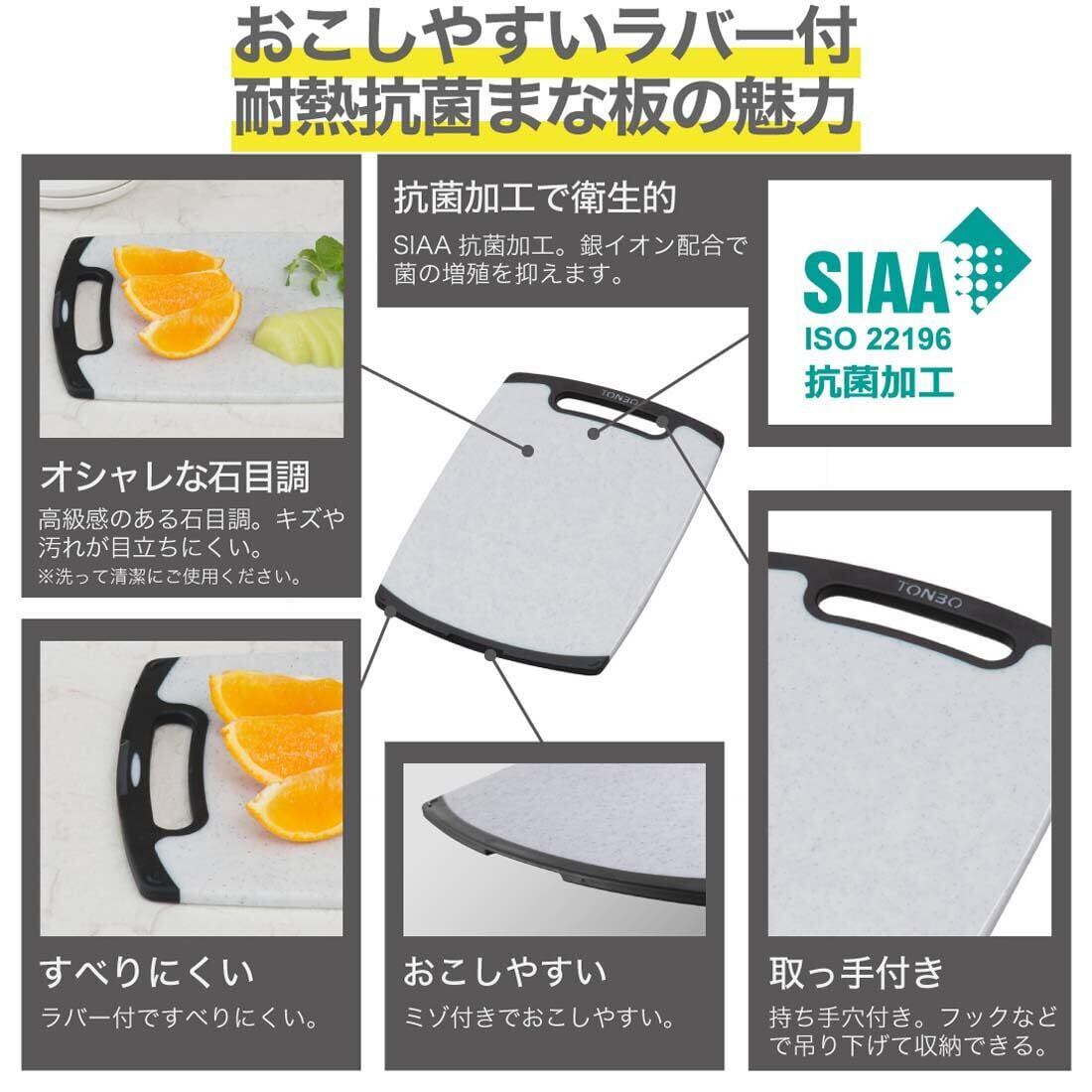 【特価セール】トンボ おこしやすいラバー付耐熱抗菌まな板 石目調 M