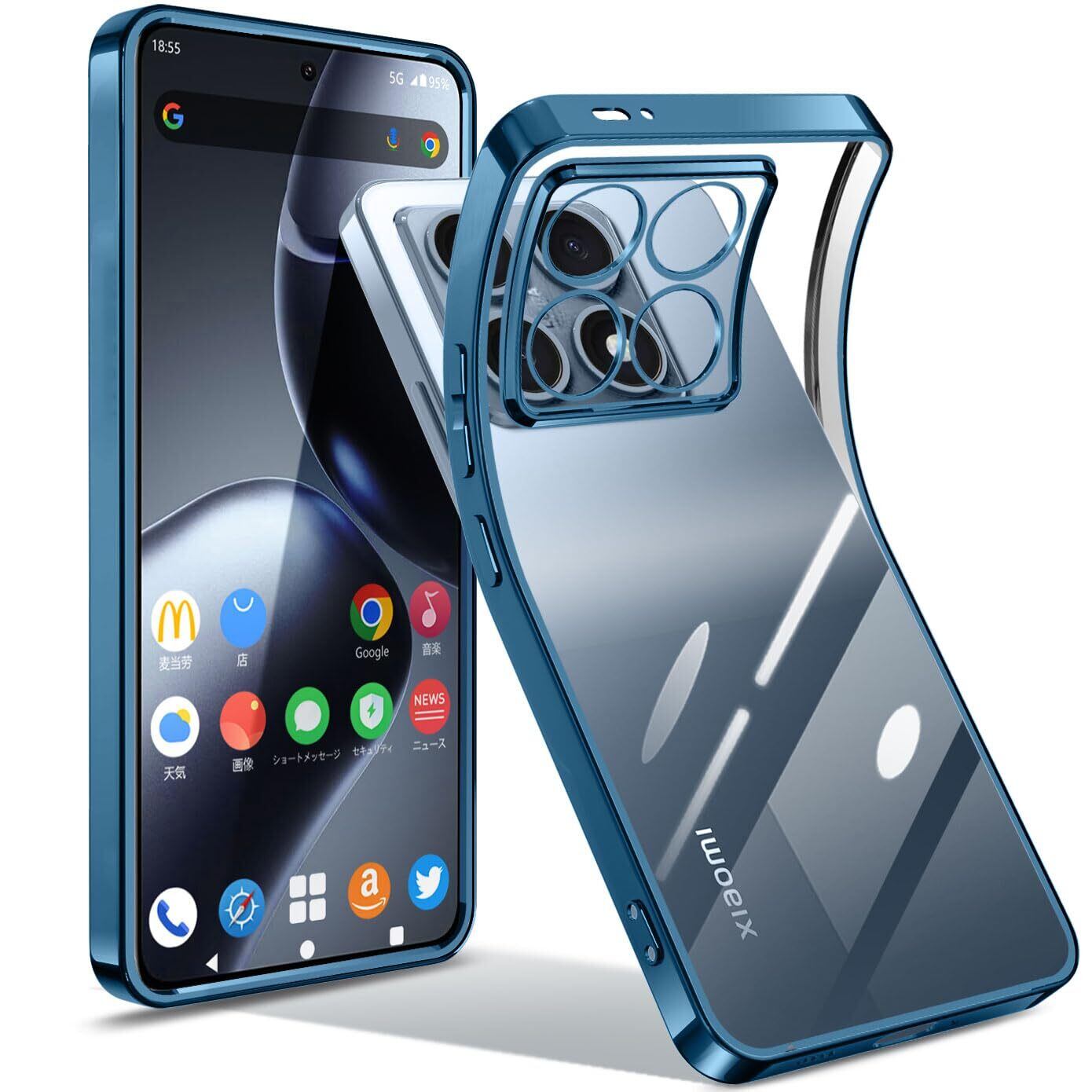 【数量限定】Xiaomi 14T Pro ケース クリア スマホケース 耐衝撃 米軍MIL規格 シャオミ 14t Pro ケース 柔軟なTPU素材 超薄型 擦り傷防止 メッキ加工 ワイヤレス充電対応 (ブルー)