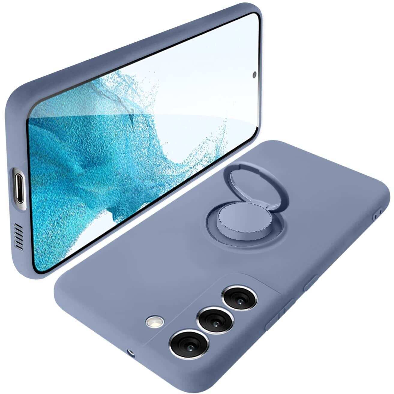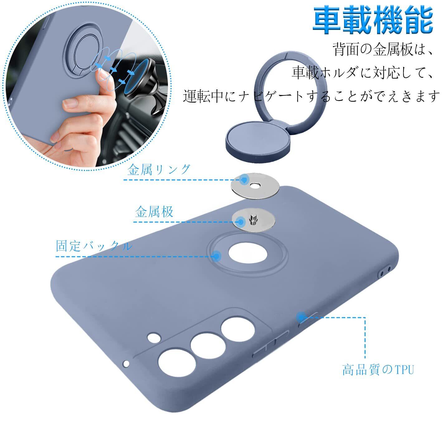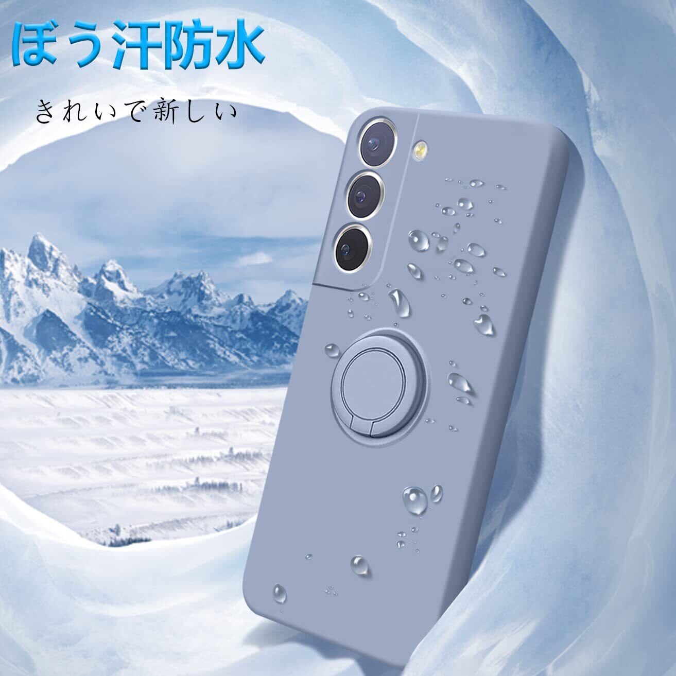Galaxy S22 ケース リング付 SC-51C SCG13 リング スマホケース カバー マット感 液体シリコン 耐衝撃 レンズ保護 ソフト スタンド機能付き 360回転車載ホルダー (グレー)