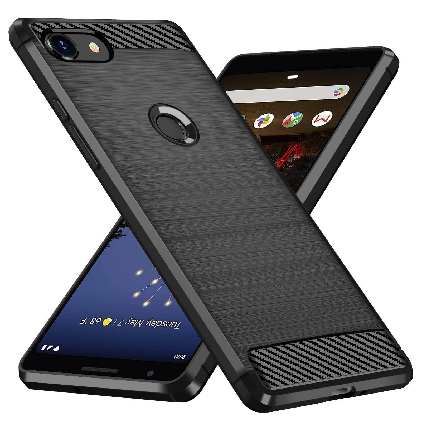 【在庫処分】PNEWQNE 対応Google Pixel 3A 用のケース シリコン TPU ソフト 炭素繊維 軽量 薄型 米軍MIL規格 耐衝撃 衝撃吸収 カメラ保護 グーグルピクセル 3A 用の携帯カバー 耐久 黒 WY25-04