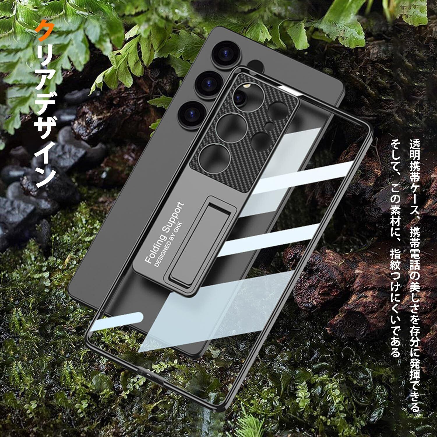 【新着商品】【NINKI】適応Galaxy S25 Ultra カバー 「SC-52F / SCG32」背面クリア キックスタンド機能 超薄型 頑丈PC 耐衝撃 指紋防止 衝撃吸収 ワイヤレス充電 手触り良き シンプル ぎゃらくしー s25 ウルトラ ケース(ブラック)