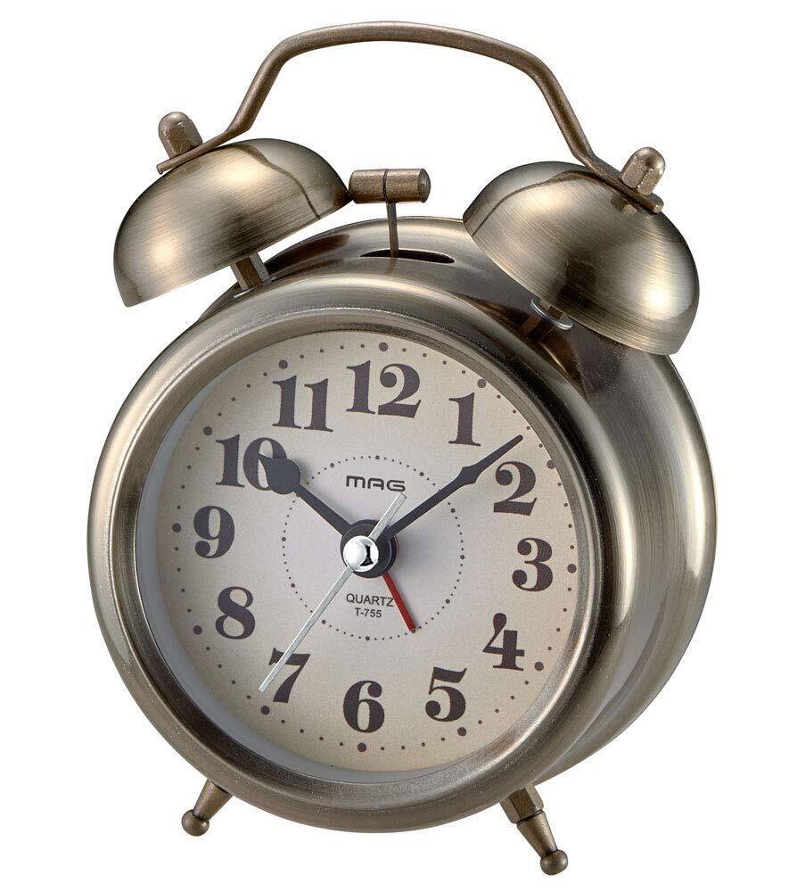 【在庫処分】MAG(マグ) 目覚まし時計 置き時計 アナログ アンティーク おしゃれ かわいい インテリア ツインベル 静音 連続秒針 ベル音 アラーム スヌーズ ライト ゴールド T-755 AG-Z ノア精密