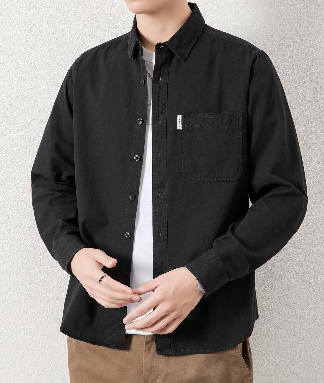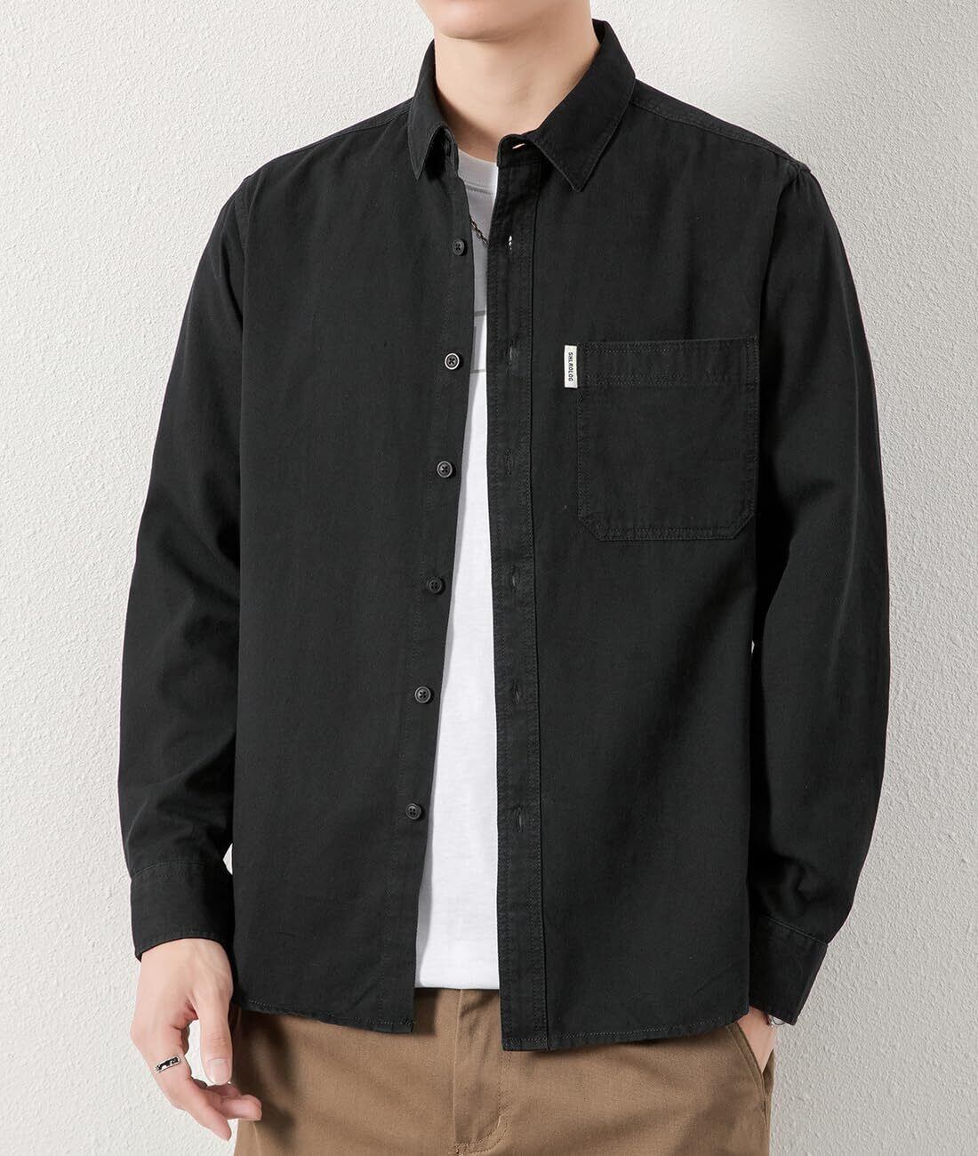 [EASTEMPO] シャツ メンズ 秋 長袖 綿 無地 カジュアル ビジネス ゆったり オシャレ 大きいサイズ