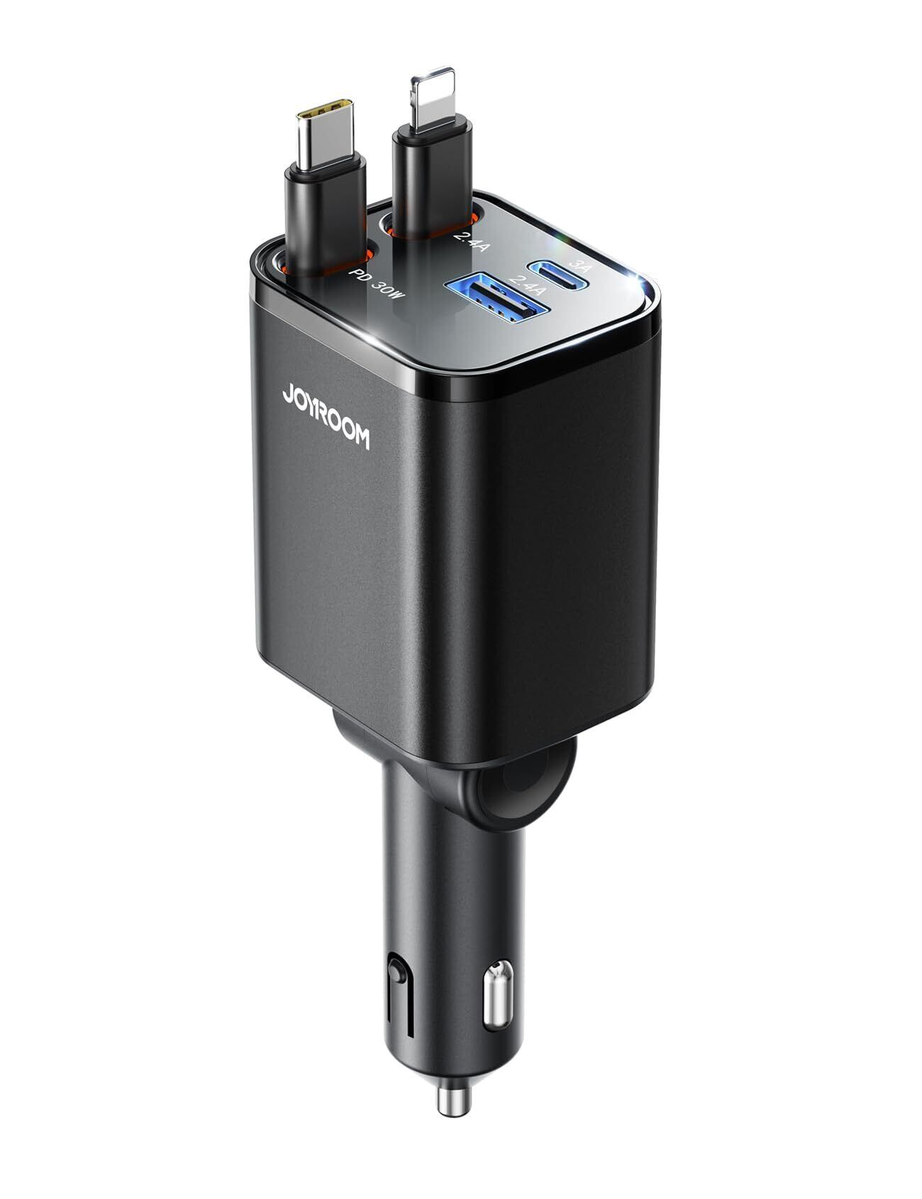 【特価商品】【巻き取り式】JOYROOM 巻き取り式充電ケーブル 車 シガーソケット 車載充電器 84W【4台同時充電可能・超コンパクト設計】 カーチャージャー 急速充電 Type-C 12V/24V対応 iPhone/Android/MacBook Air/iPad対応