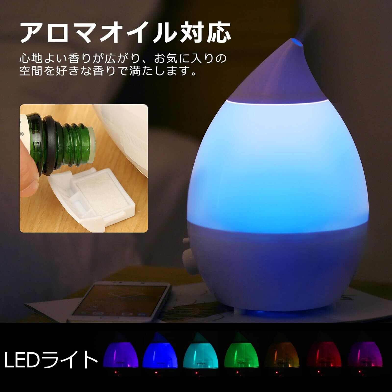 特徴 アロマディフューザー, タンク取り外し可能、お手入れ簡単, ナイトライト, 超静音, 軽量