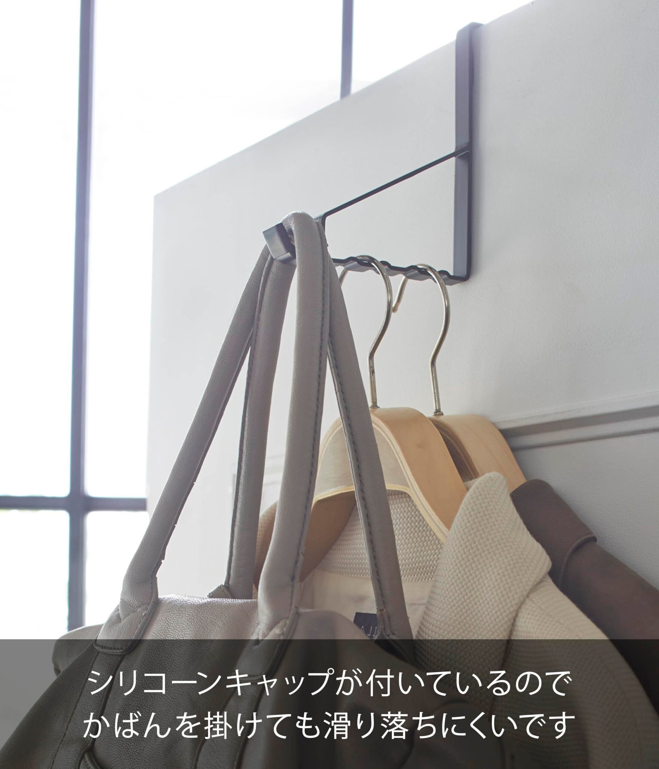 先は滑りにくいシリコン素材になっているので帽子や洋服をそのまま掛けられます。