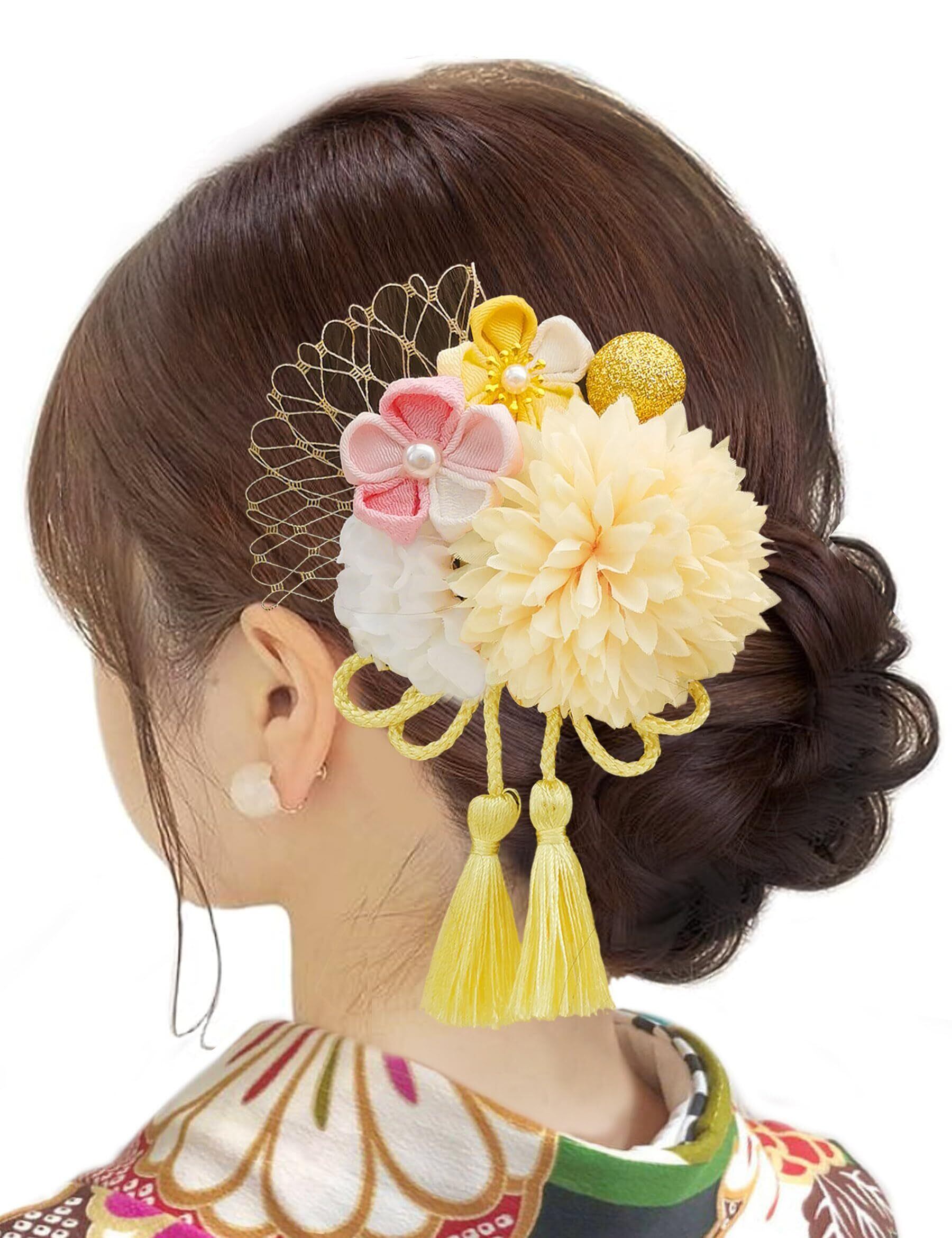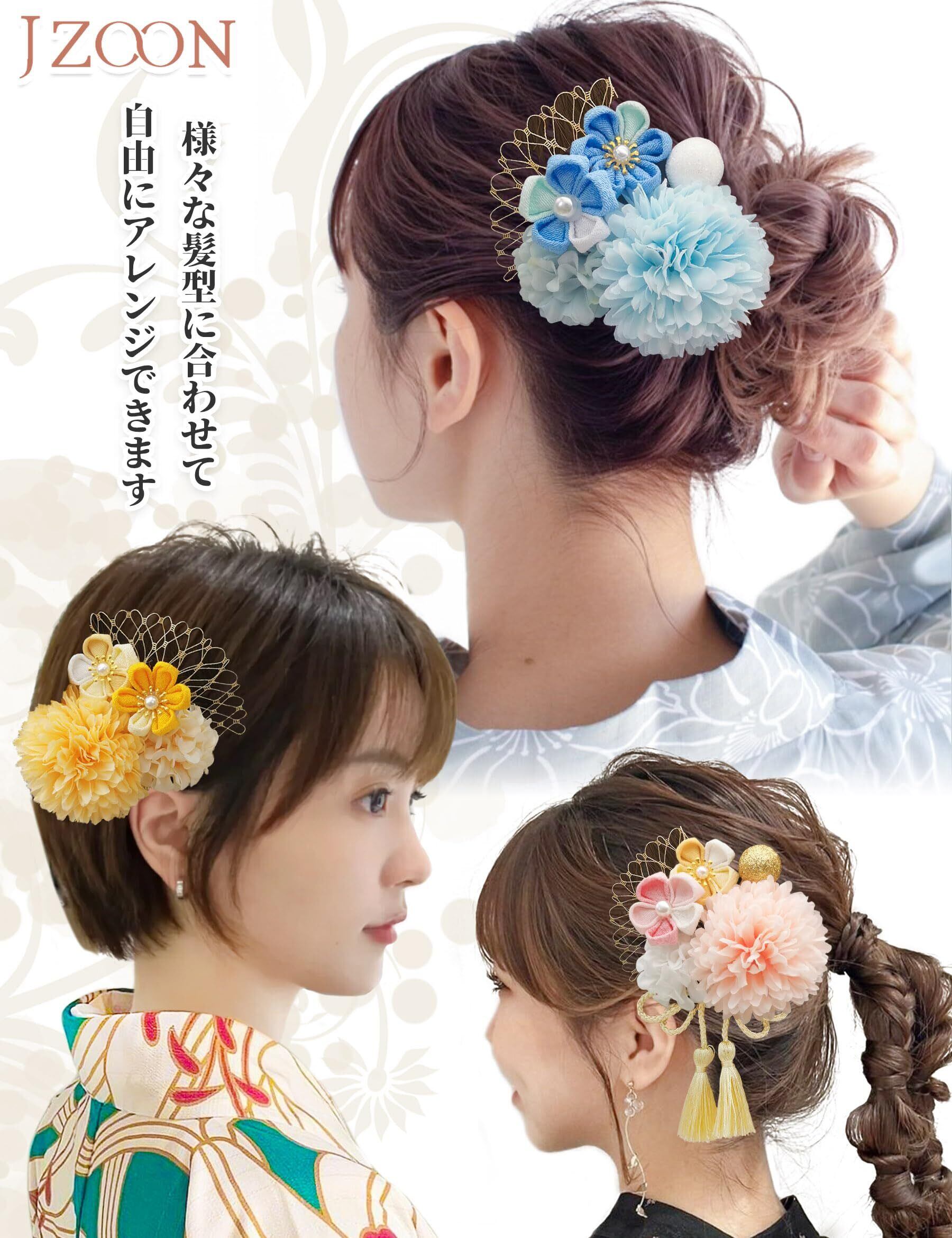 【JZOON】8色展開 浴衣 髪飾り つまみ細工 髪飾 成人式 袴 卒業式 和服 和装 着物 結婚式 ピンポンママ 紐 網飾り 花火大会 お祭り 手作り 赤 白 青 B6001