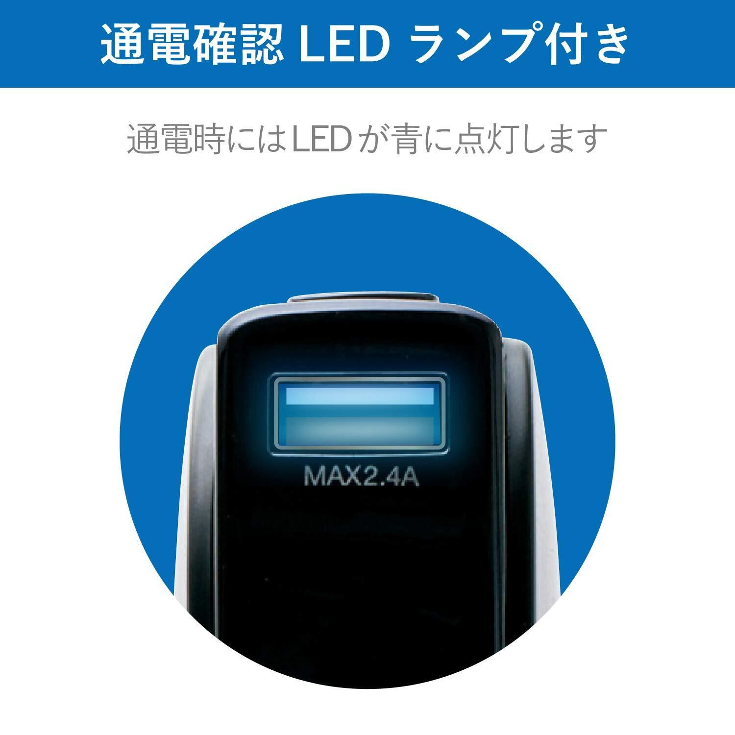 最大出力3Aの巻取り式USB Type-C(USB-C)コネクタと、最大出力2.4Aでおまかせ充電に対応したUSBポートを搭載し、2台のスマートフォンやタブレットを同時に充電可能です。