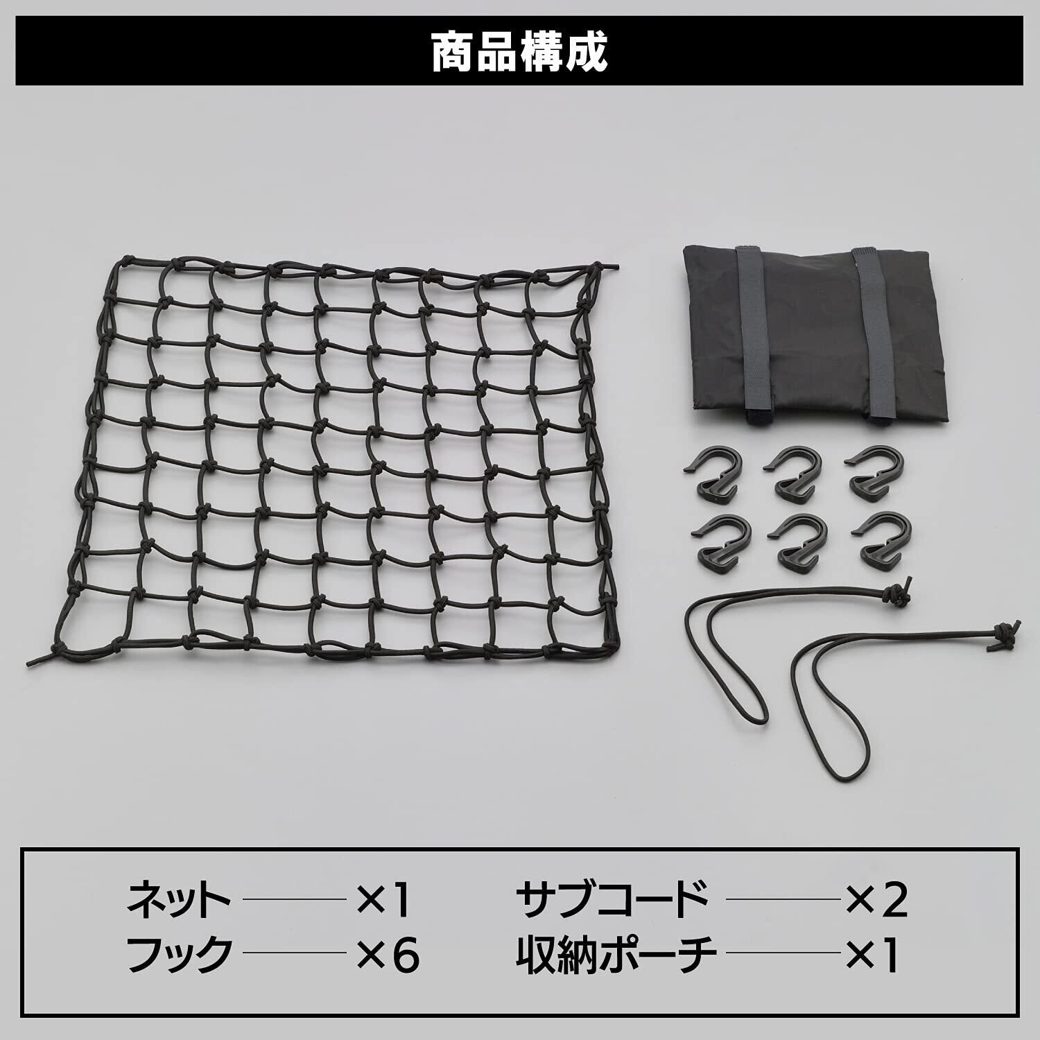 デイトナ(Daytona) バイク用 ツーリング ネット Lサイズ(400×400mm) フック6個付属 収納ポーチ付きネット&フック ブラック 72185